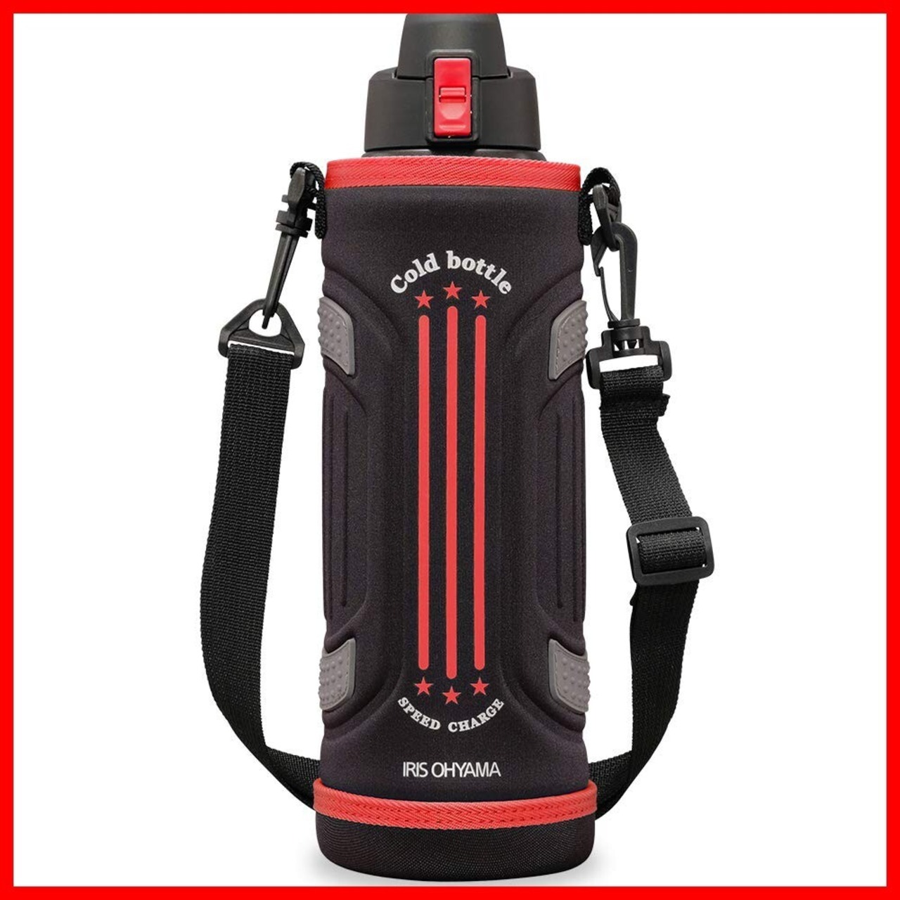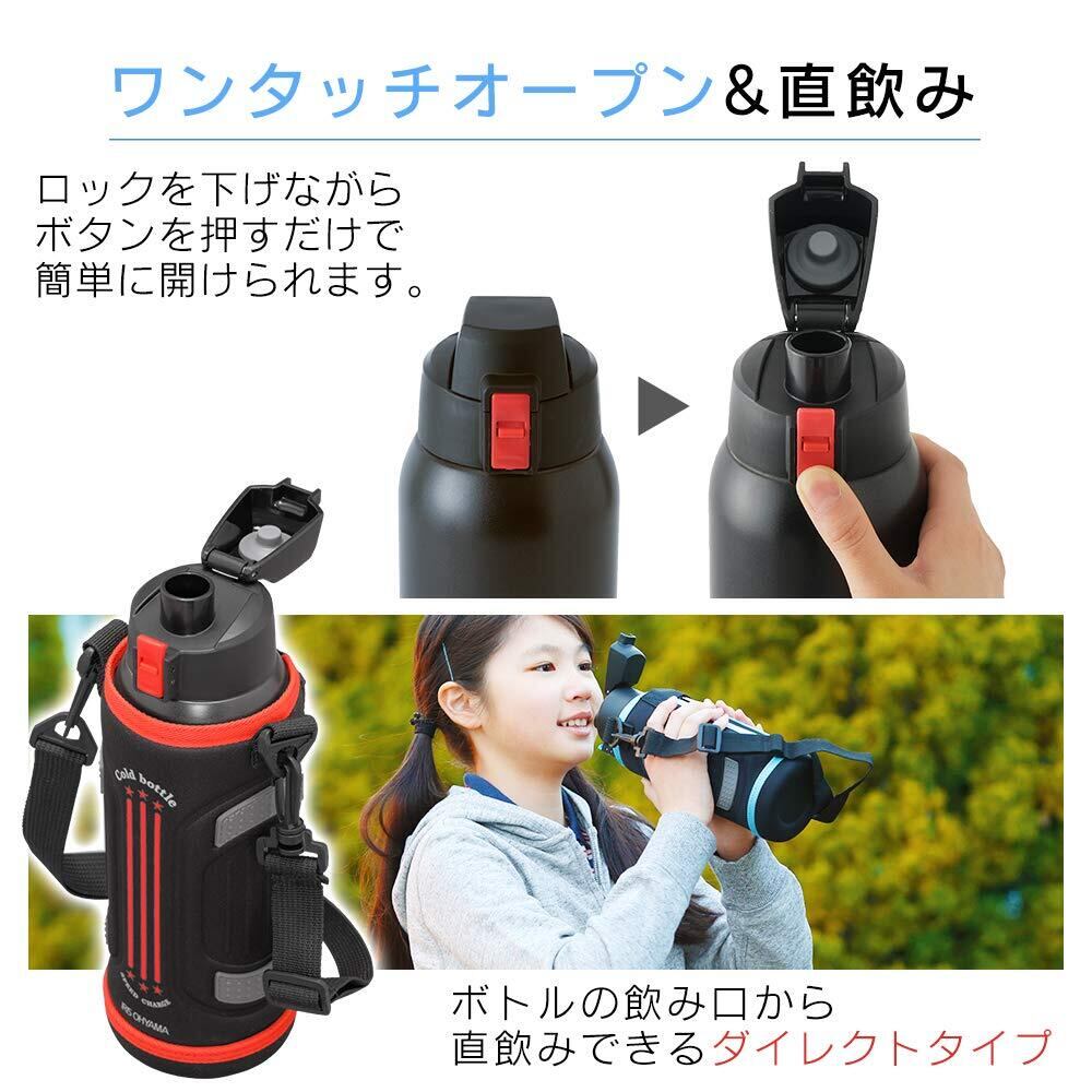 アイリスオーヤマ 水筒 1000ml 真空断熱 保冷6時間 簡単ロック ワンタッチ開閉 レッド DB-1000