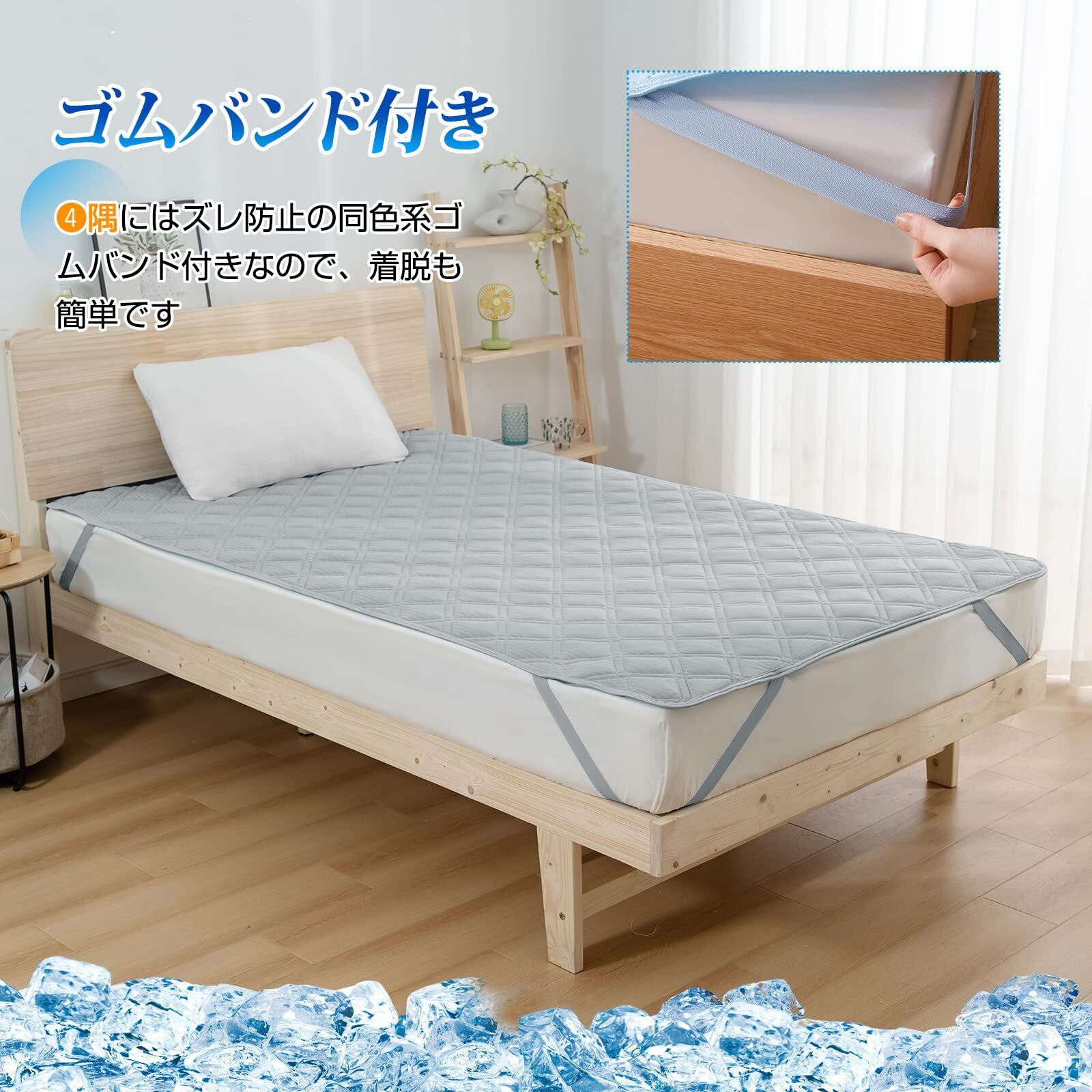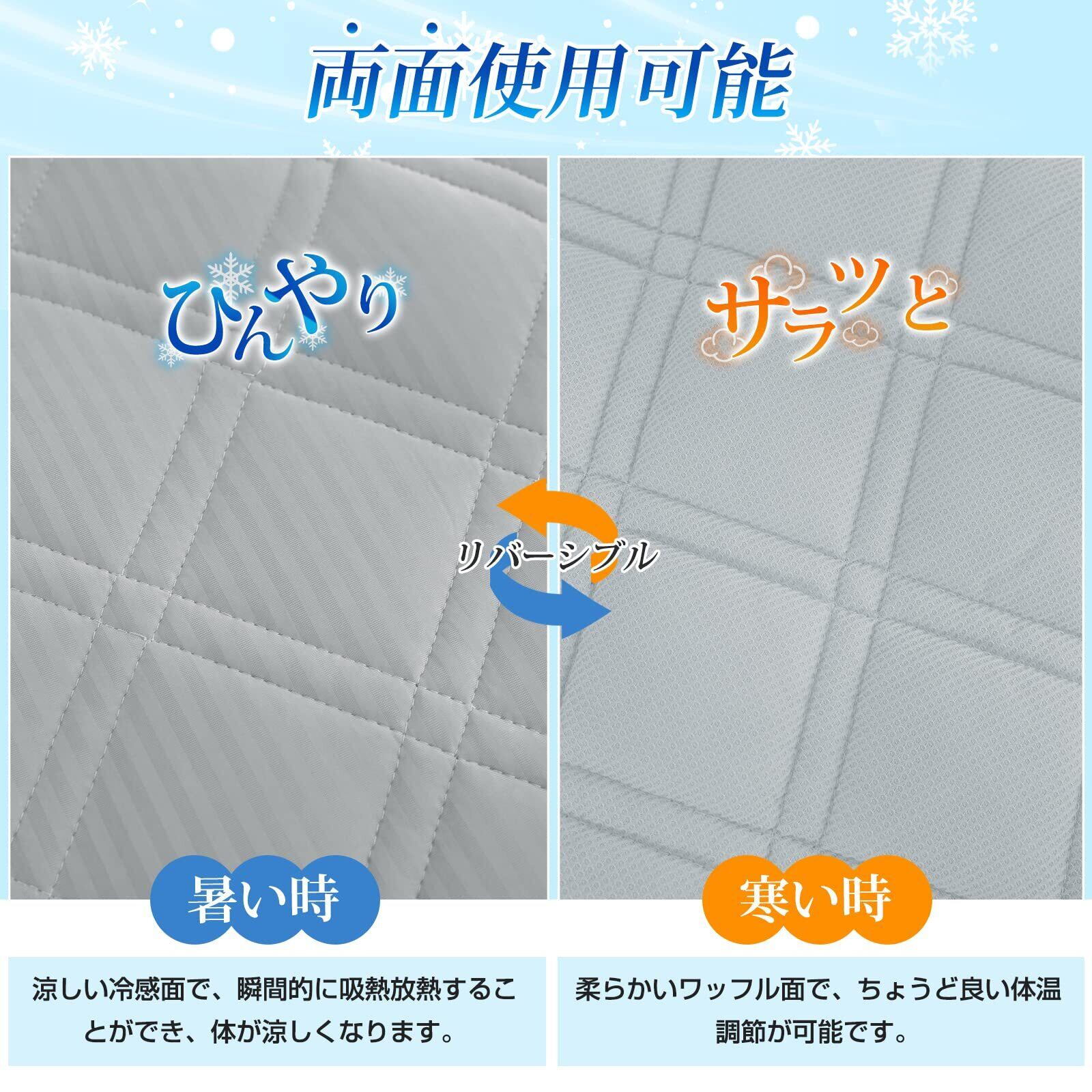 【両面使える&ゴムバンド付き】表地は接触冷感生地で、触れるとひんやりとし、寝苦しさを軽減させます。裏地は柔らかく着心地の良いワッフル生地で、夏が終わっても全く心配なく、反転しても使いやすい商品。季節を選ばないオールシーズン使用可能で、春・秋・冬も完全OK!。敷きパッドの四隅に滑り止めのゴムバンドが付いていて、敷きパッド をマットレスにしっかり固定できる。同じ色のゴムバンドを使用しているので、より美しくなる。お洗濯の際の取り外し&取り付けも簡単なので、使いやすくて、家事の負担も軽減してくれる。