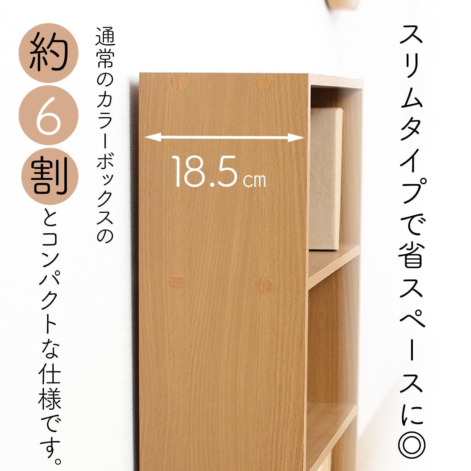 奥行18.5cmで、書籍やDVDの収納に適したデザインです。