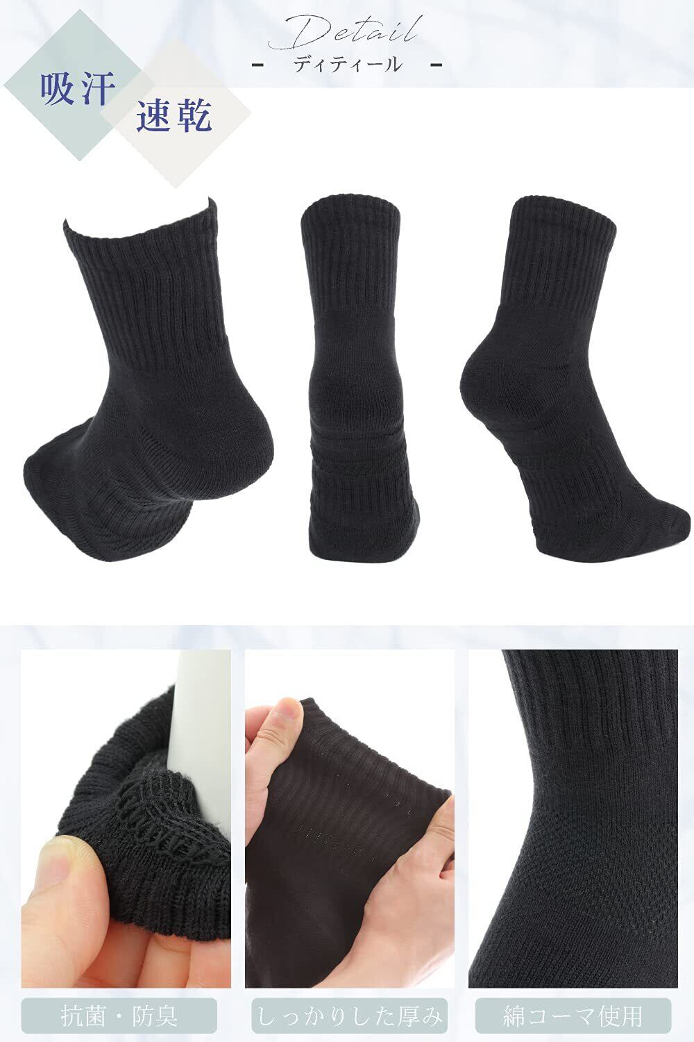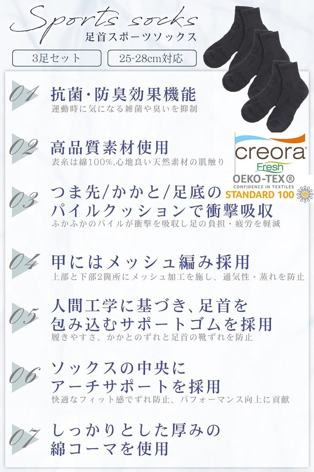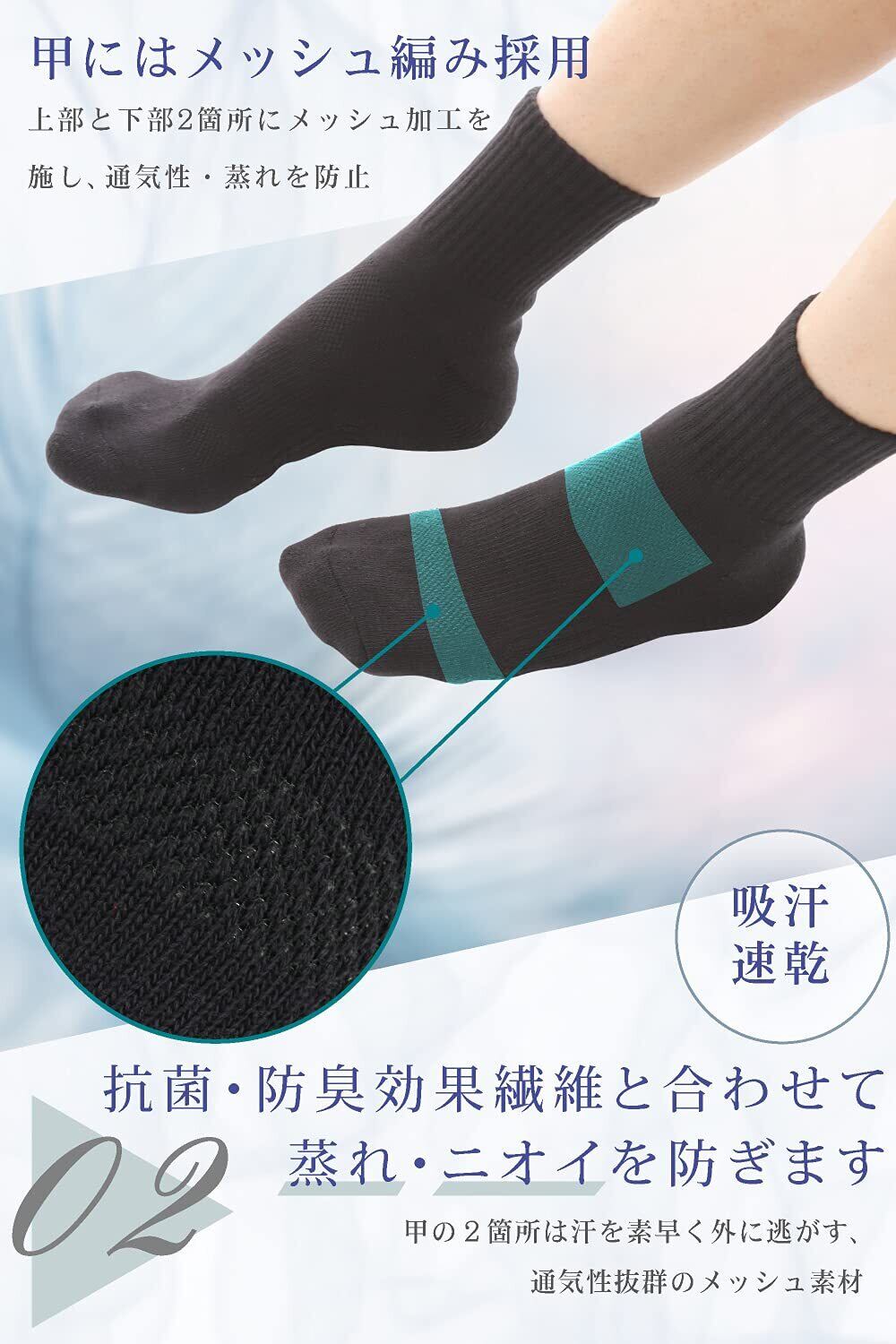 靴下 メンズ くるぶし スポーツソックス 消臭抗菌 25-28cm ショート スニーカー (ブラック, 3)