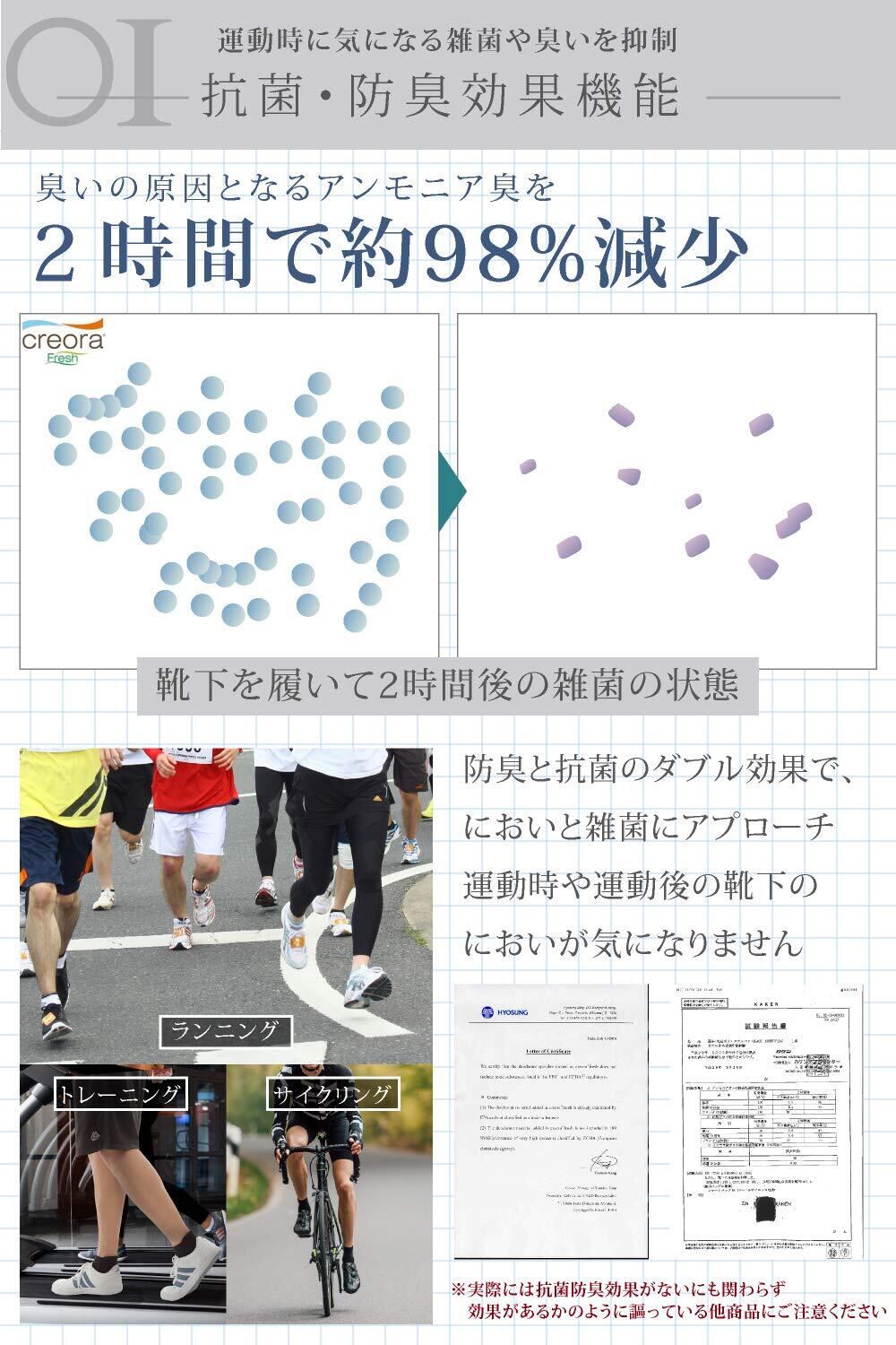【消臭・抗菌機能搭載】裏糸に消臭・抗菌機能のあるCreora Fresh素材を使用 運動時の気になる雑菌やにおいを抑制 専門機関にて効果検査済みです
