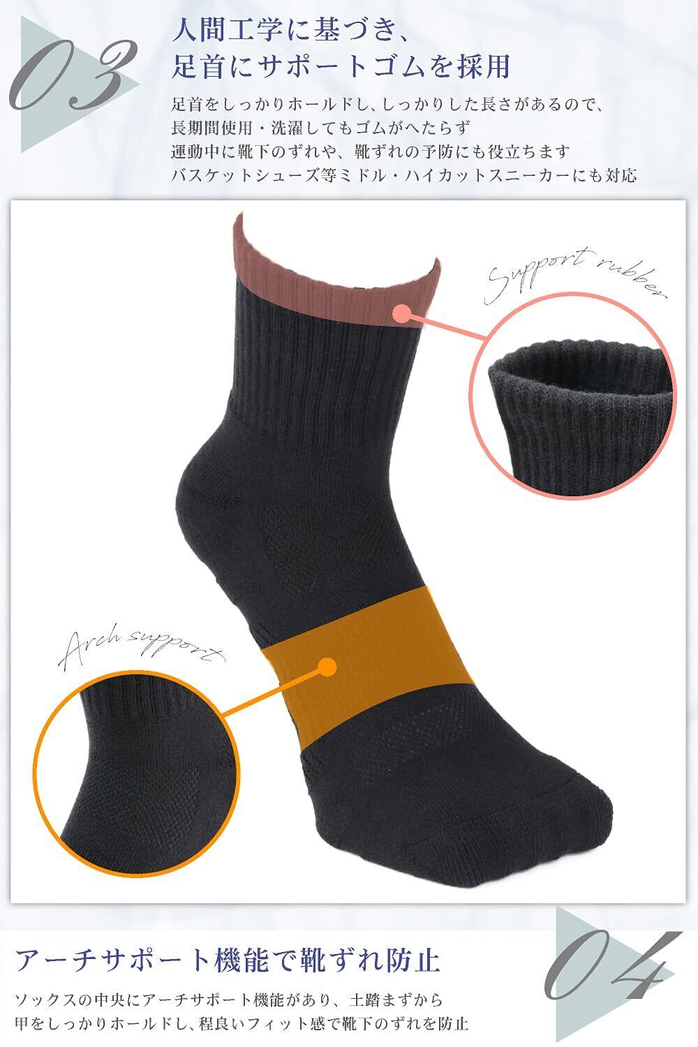 【ソックスの中央にアーチサポートを採用】快適なフィット感でずれ防止、パフォーマンス向上に貢献