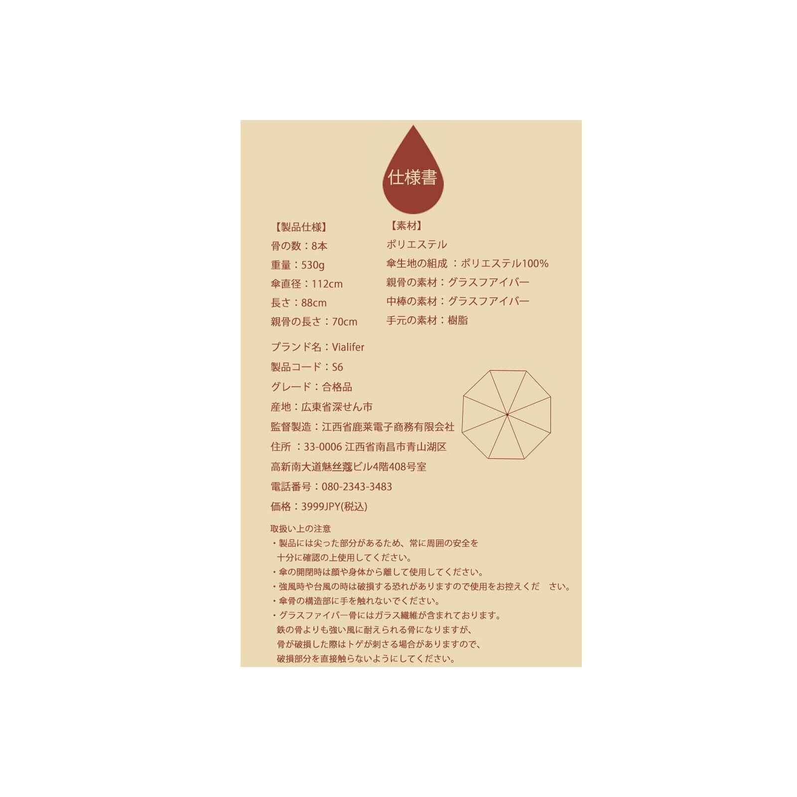 【210t撥水加工-260t撥水加工まで大突破!!】Vialiferの傘は260T高密度 NC布で作れた傘面にTeflon塗装が付き、5層防水構造、撥水力が強い、激しい豪雨の中でも、体のどこも濡れません。傘を閉じた後、軽く振るだけで、水滴が簡単に振り払えます。また、防汚効果もあり汚れに強いのも特徴です。