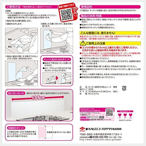 東洋アルミ 壁面シート 45cm×25cm 透明 キッチン 汚れ防止シート 貼りやすい コンロ壁掃除を楽に 油ハネガード S2829