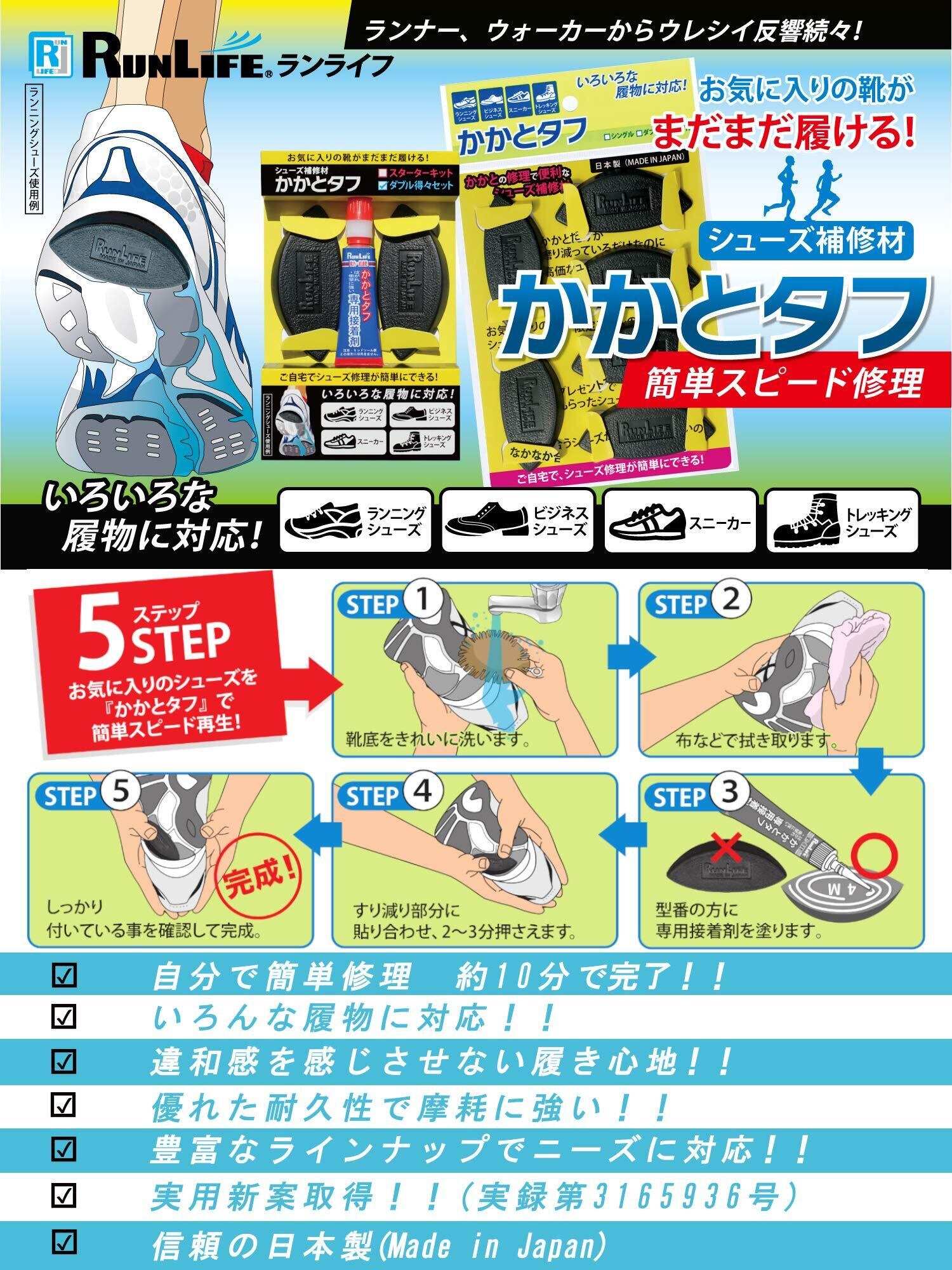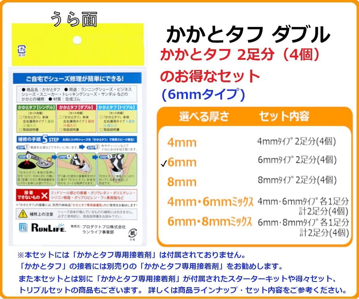 RunLife(ランライフ) 靴修理 シューズ補修材 かかとタフ 6mm ダブル 2足組 (4個) SKT-6M×4