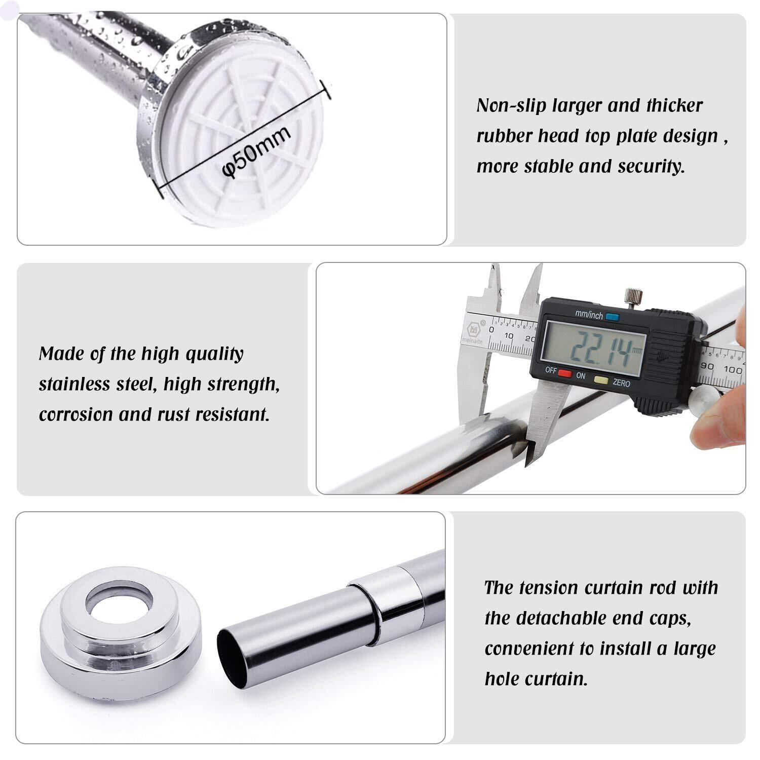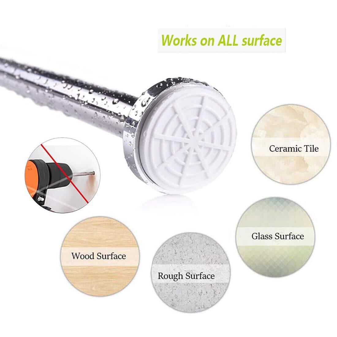 【色んな場所で大活躍】伸縮棒はタイルの壁面だけではなく、木製壁などの表面にも使用できます。湿気の多い梅雨季節でも普通の時でも、シャワーカーテンロッド、バスルーム衣類用ロッド、室内クロゼットロッド、カーテンロッド、DIY棚、布団干し、屋外物干しなど様々なシーンで活用できます。