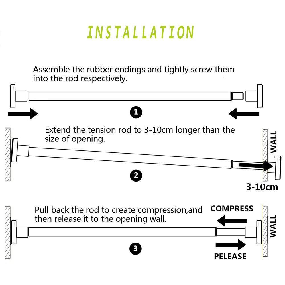 【優れた荷重能力】高品質な201ステンレス素材で製造されたつっぱり棒は強い荷重(最大15kg)に耐えられ、重い洗濯物干しや厚地のカーテンも楽々吊るせます。そして、伸縮棒は錆びが出ない上に、カビにも強いです。(ご注意:設置された長さが違うと、荷重能力は変わります。伸縮が少ない方がより荷重能力がもっとよいです)。