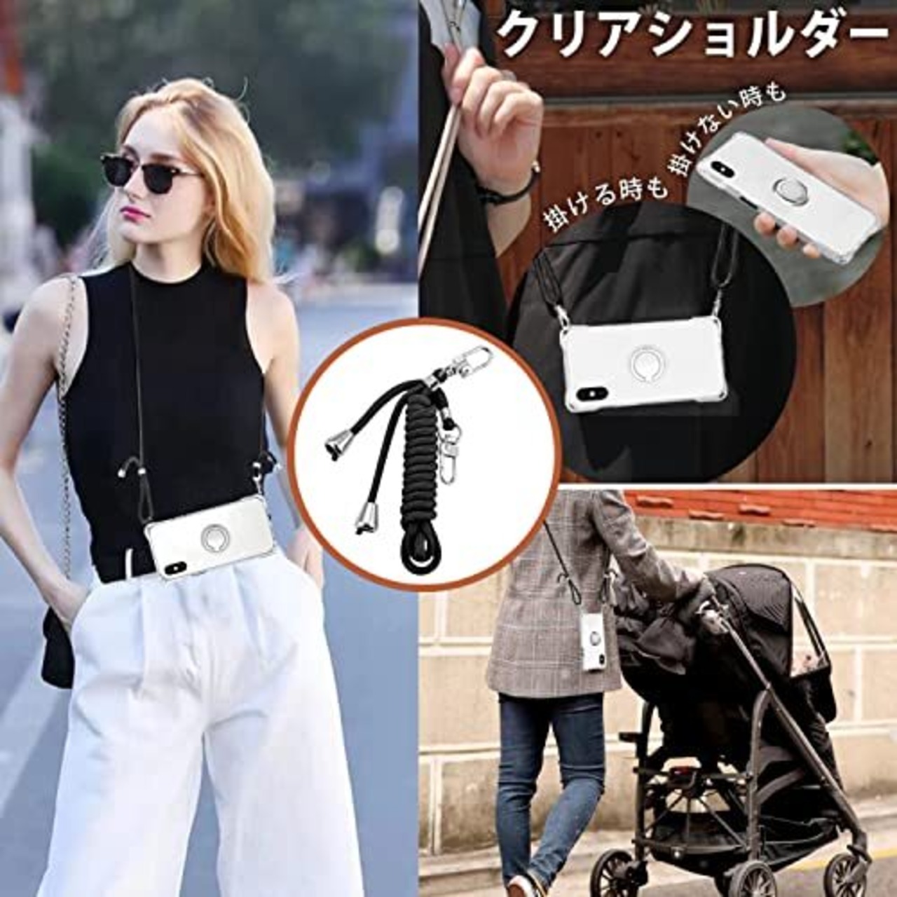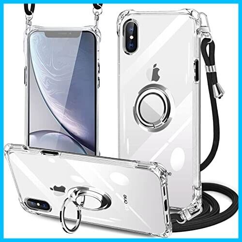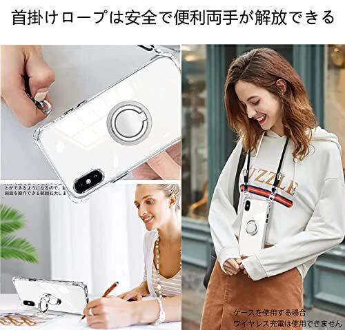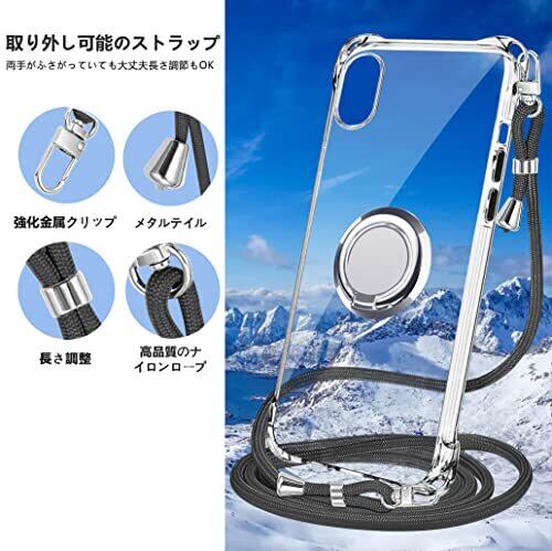 PAILAIMEN iPhone xs max ケース クリア ネック リング付き ショルダー 耐衝撃 対応 アイフォンxs max スマホケース 肩掛け 斜めかけ 縄掛けケース 透明 TPU ストラップ付き 携帯ケース 薄型 軽量 紐付き 斜めがけ 織りストラップ付き ネック ケース 肩掛け 縦/横 2WAY 調節可能なショルダー カバー 長さ調整可能 取り外し可能 (縄掛け-ブラック)