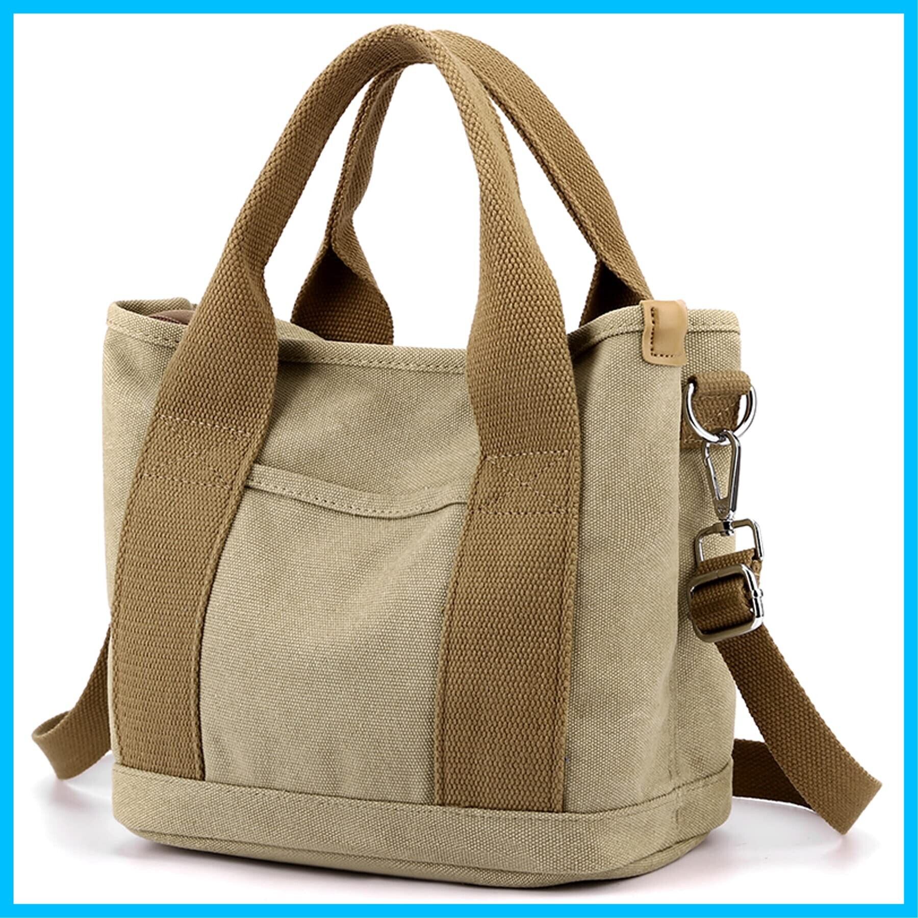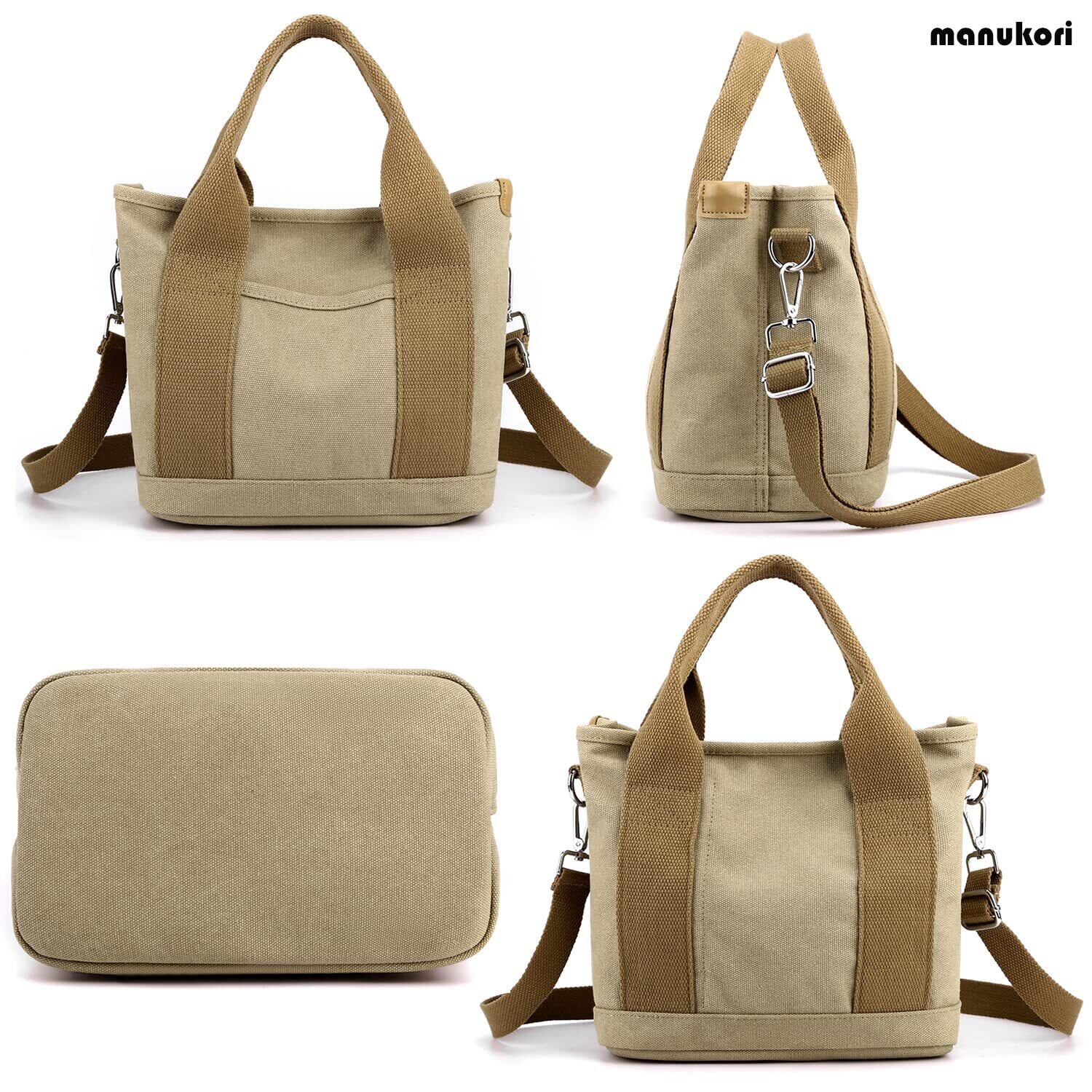トートバッグ レディース 小さめ キャンバス 仕切り ハンドバッグ ショルダーバッグ おしゃれ かわいい 軽量 旅行 通勤 自立 (khaki, S)