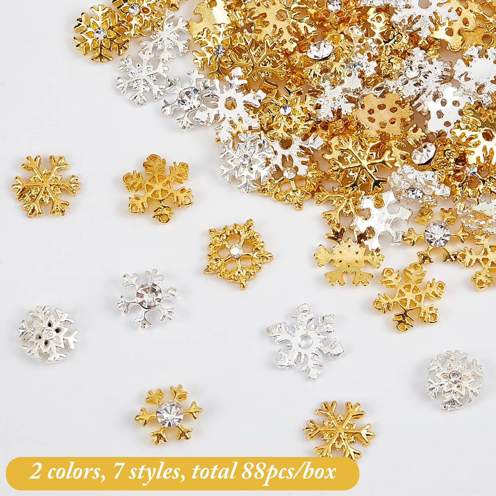 幅広いスタイル:ここでは、雪の結晶をテーマにした7種類の合金製レジン封入ペンダントが合計約88個となります。幅広いスタイルと数量は、あなたのクラフトに十分な利便性を提供します。
