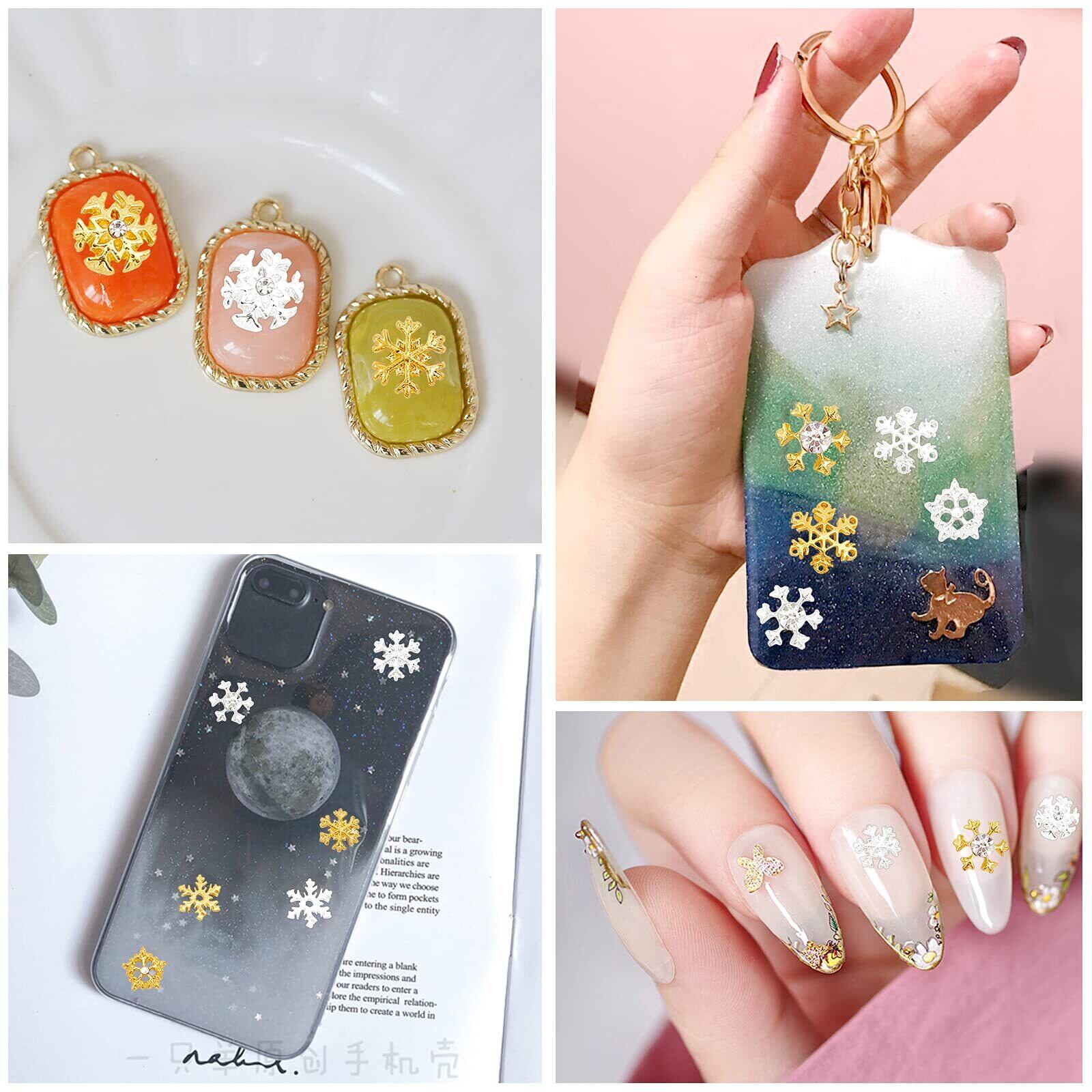 OLYCRAFT 88個7種類 雪の結晶レジン封入 雪の結晶メタルパーツ ネイルパーツ 雪花メタルレジン封入 メタルネイルパーツ レジン封入 レジンパーツ ネックレス イヤリング アクセサリーパーツ