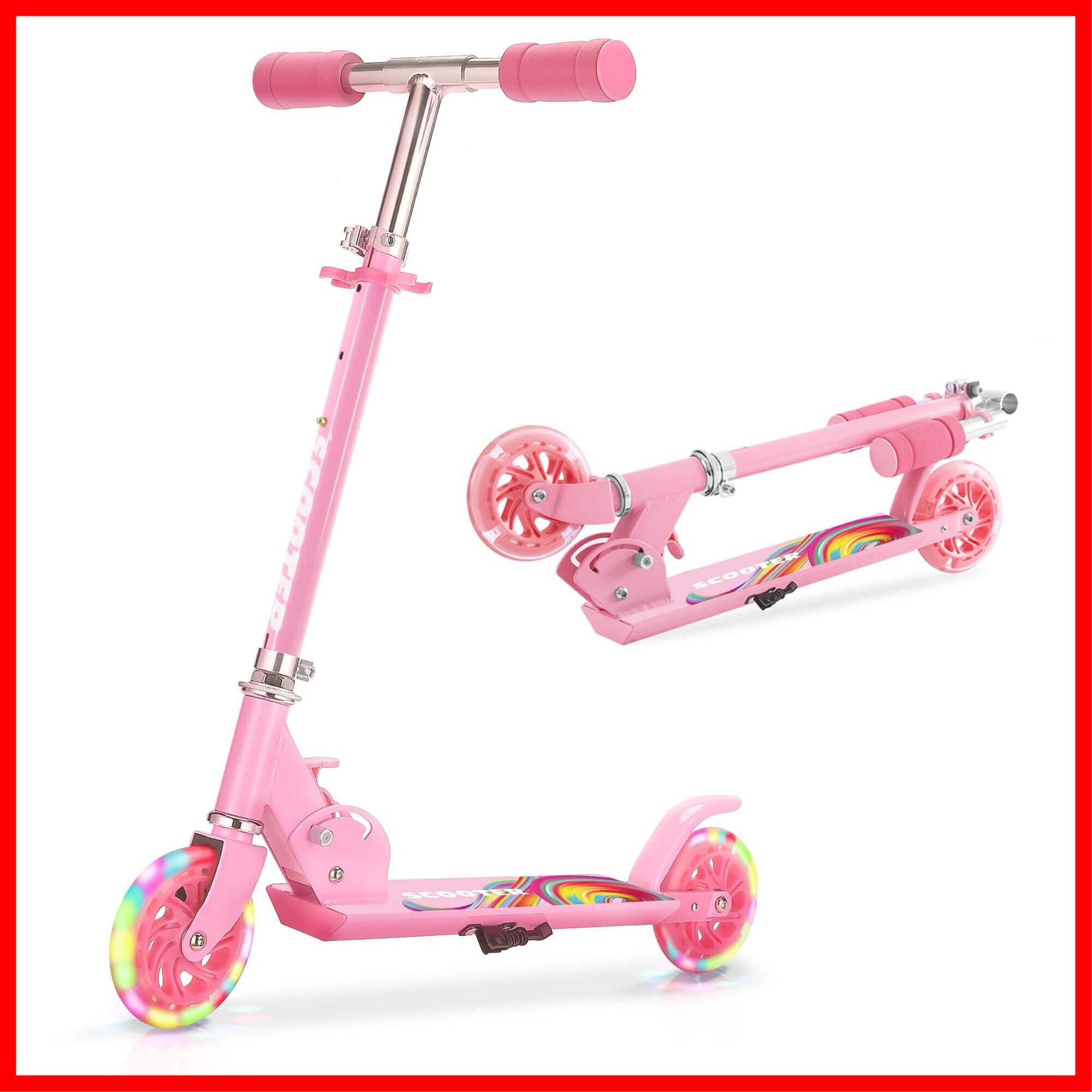 Tenboom キックボード キックスクーター 子供用 LEDタイヤ スタンド付き キッズ スケーター 折り畳み式 持ち運び便利 収納易い 高さ調整可能 男の子 女の子 誕生日/クリスマス/新年/入学お祝い ギフトに最適 桜色