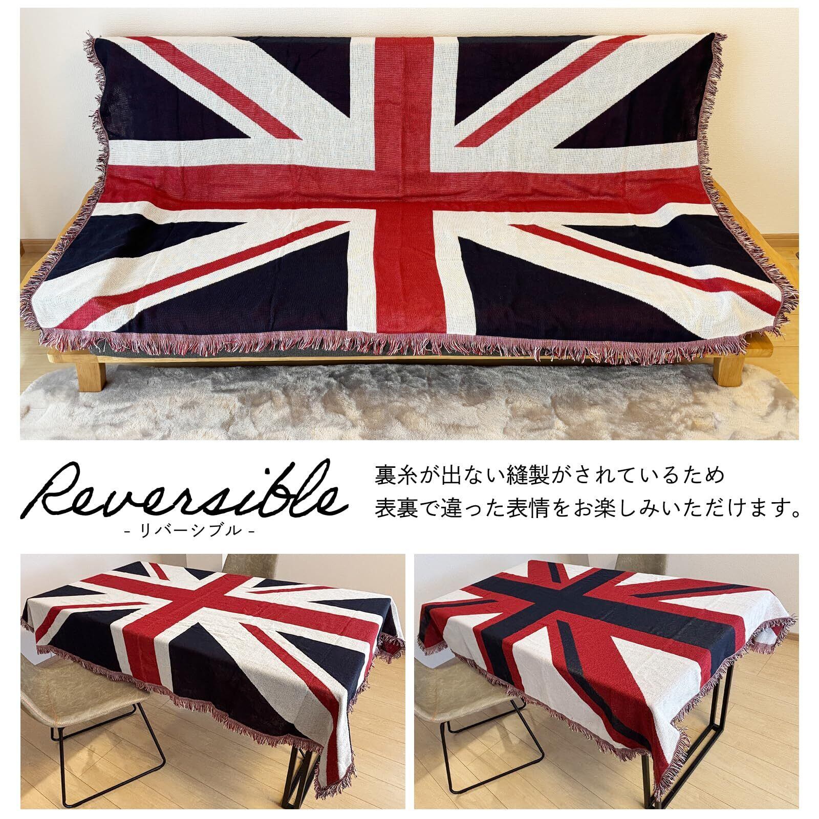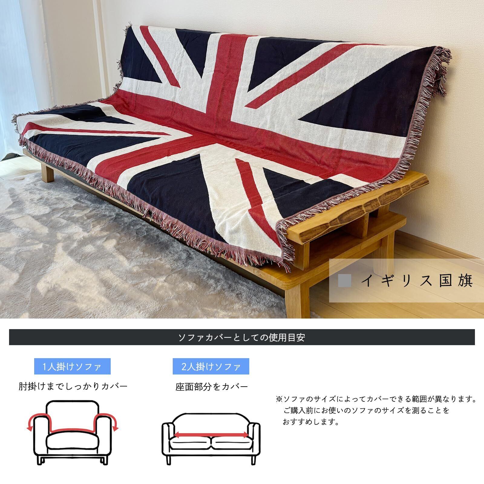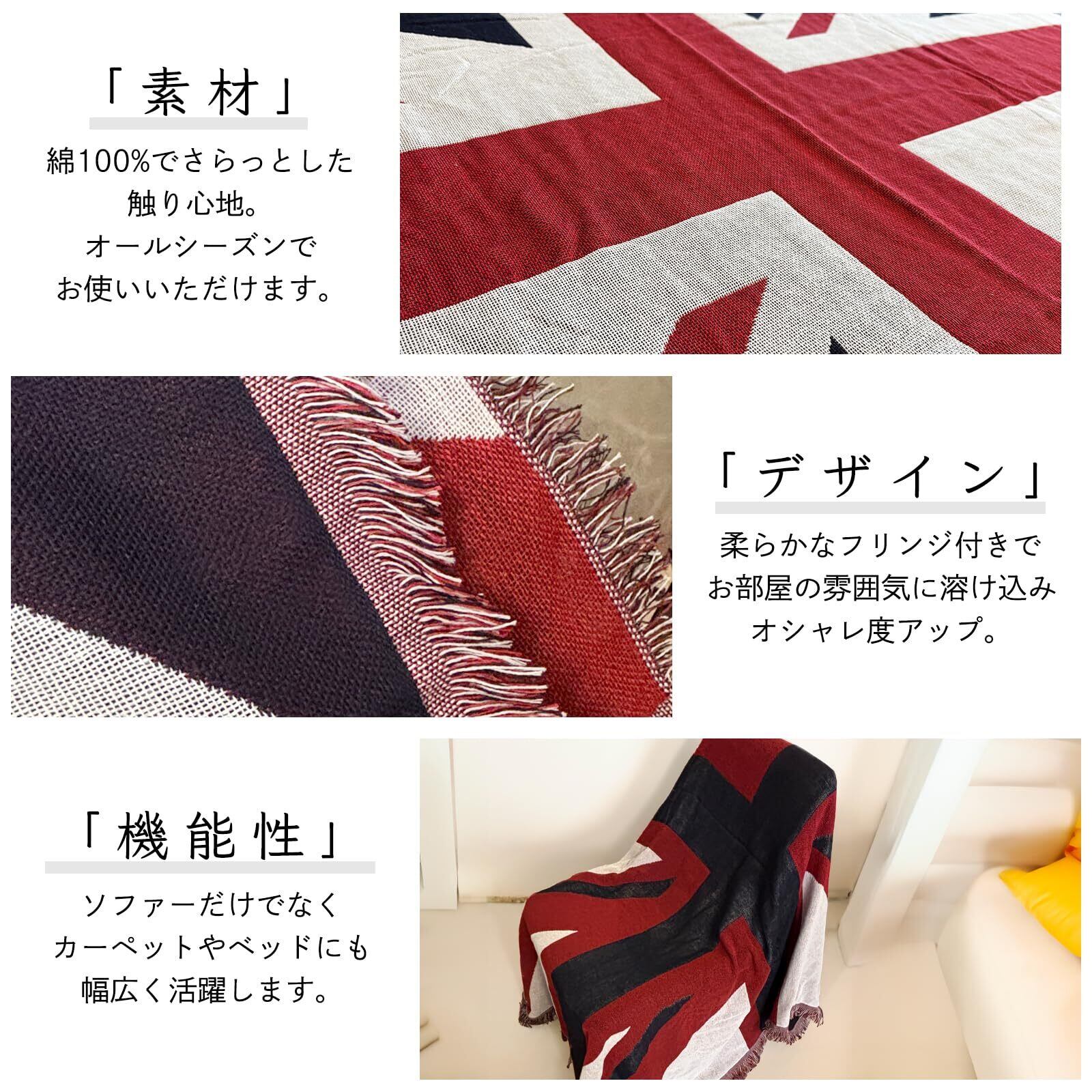 モデルノ ラ テール コットン 素材 130cm×180cm ベッド ソファー マルチ カバー テーブル クロス フリンジ 付き ラグ カーペット マット エスニック ML-CMC アウトドア 布団 (イギリス国旗)