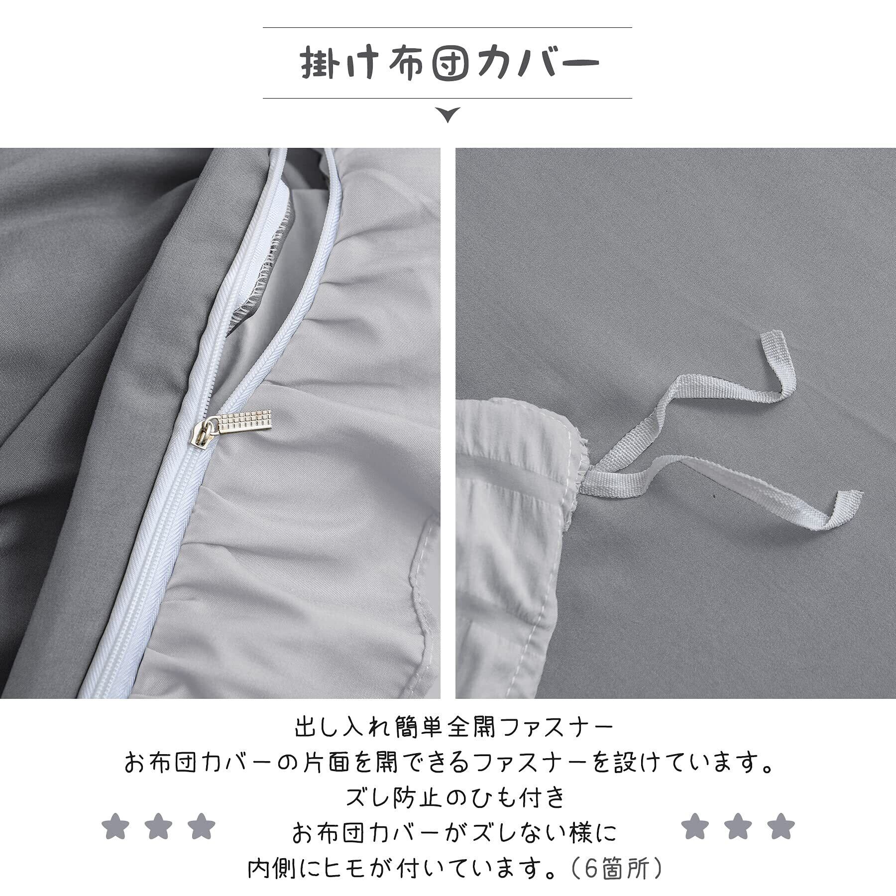 <洗濯OK>:家庭で丸洗いでき、毎日素肌に触れる布団カバーは、いつも清潔なものを使いたいと思います。色褪せにくい、型崩れが起きにくく、耐用性抜群。お子様にも安心です。四季を通じて長くご愛用いただけます。このカバーセットなら、寝具をいつも清潔と快適に保てます。