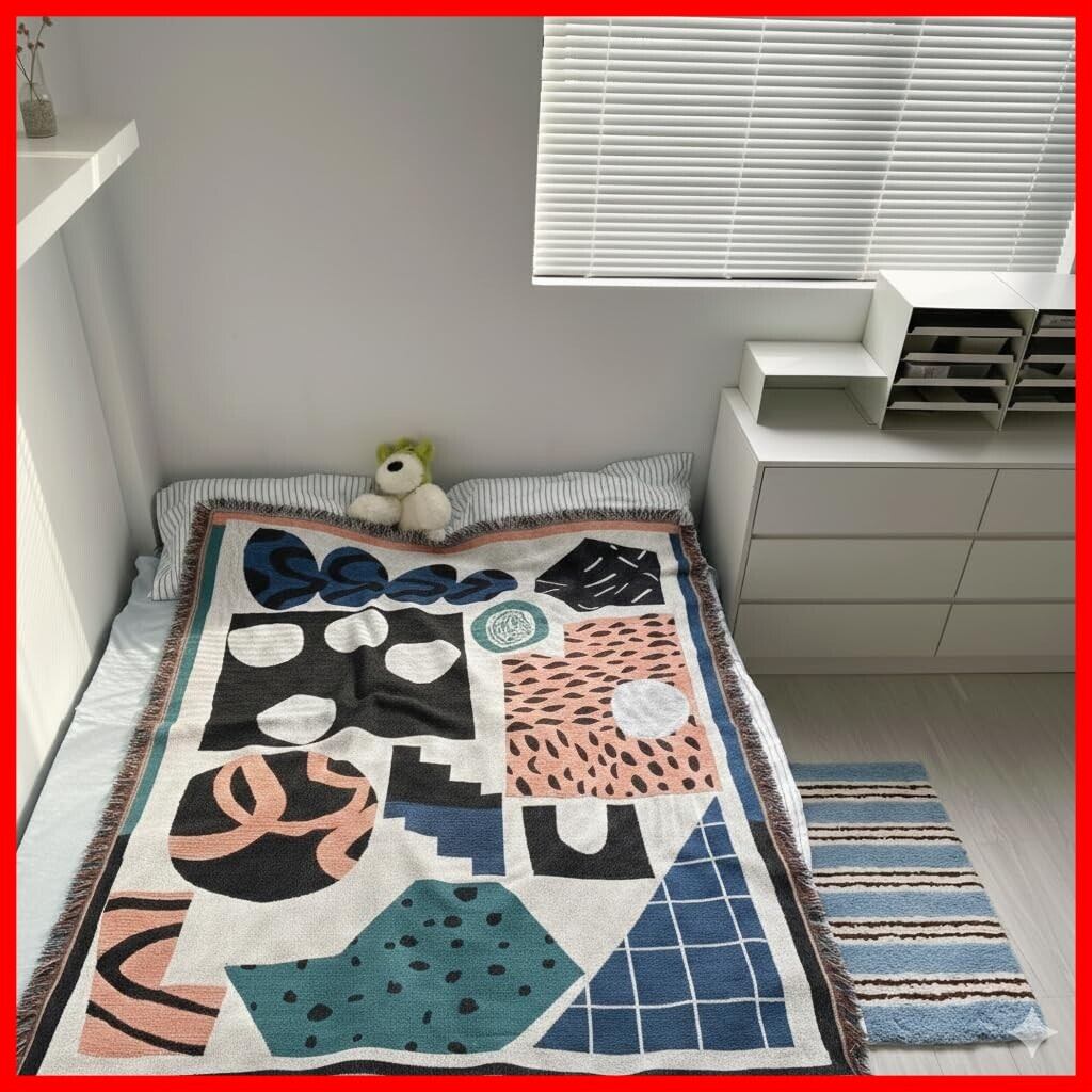 肌ざわりの良いコットン織物 ブランケット ラグ ソファ チェア ベッドなど様々な場面 お家 オフィス 旅行 デコレーション