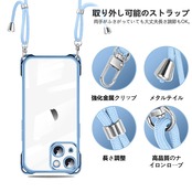 NISIILNG iPhone 15 用 ケース クリア ショルダー iPhone15 スマホケース アイフォン15 カバー 肩掛け 斜めかけ 縄掛けケース 透明 薄型 軽量 耐衝撃 TPU ストラップ付き 紐付き 斜めがけ 織りストラップ付き ネックストラップ ショルダー 縦/横 2WAY 長さ調整可能 取り外し可能 落下防止 紛失防止 (ブルー)