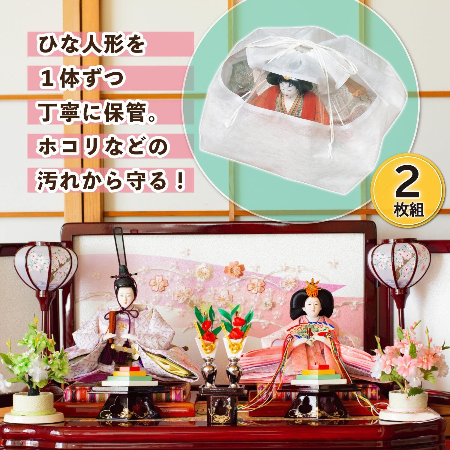【通気性に優れたひな人形用保存袋】:通気性の良い不織布でひな人形をホコリから守り大切に保管。