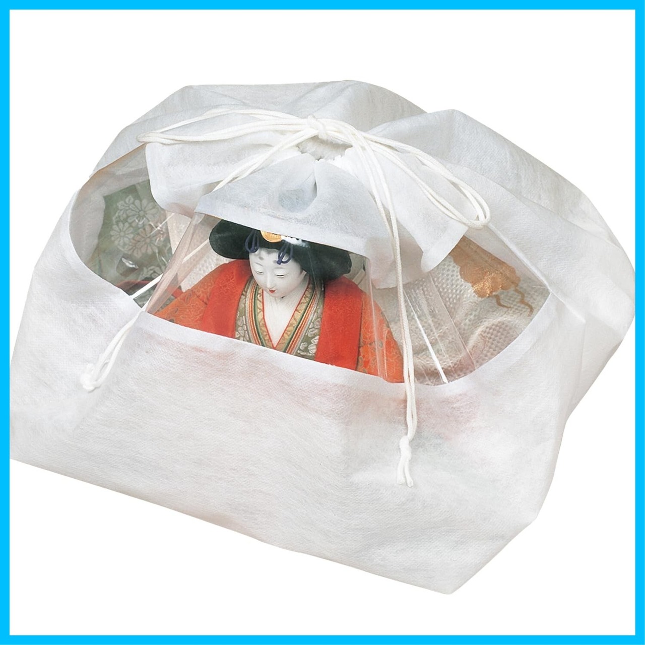アストロ ひな人形 保存袋 ホワイト 2枚組 通気性の良い不織布製 雛人形 お雛様 お内裏様 収納袋 巾着袋 保管 保存 埃除け ひな祭り お人形 中身が分かる 透明窓付き 115-08