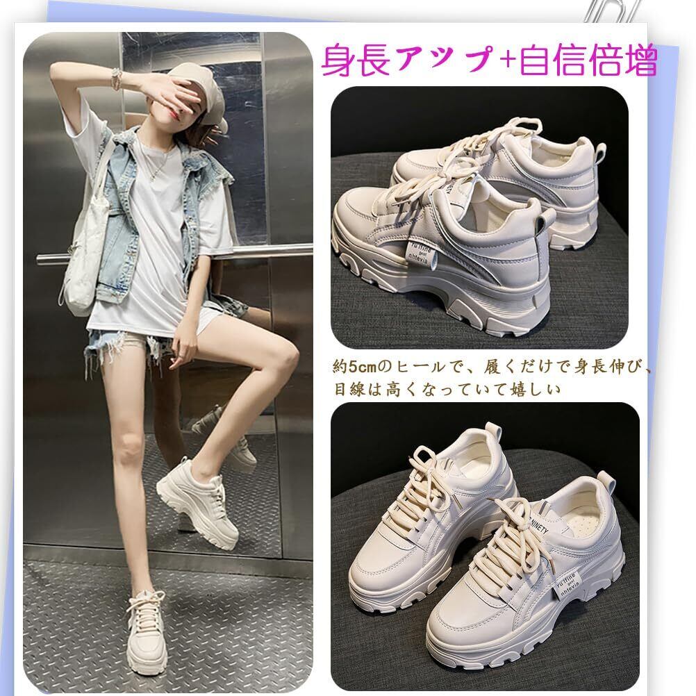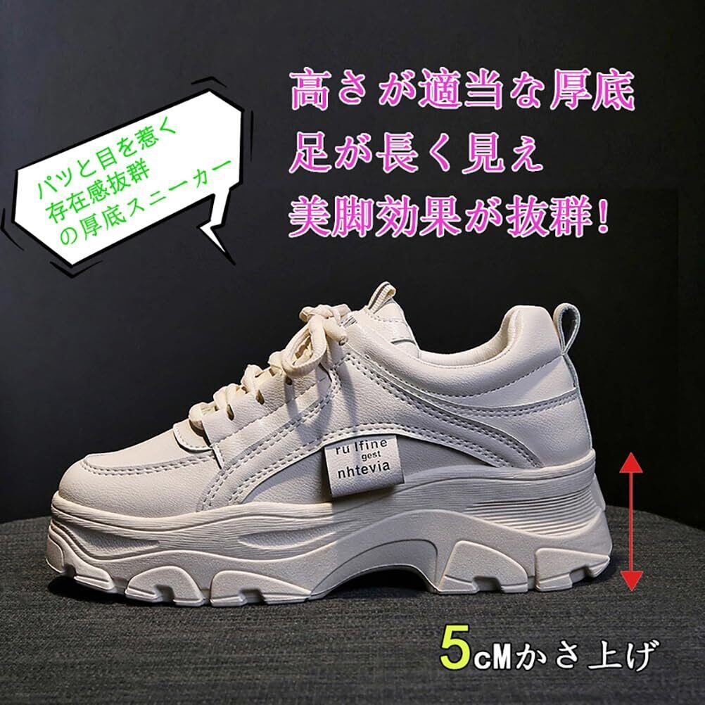 【美脚、超人気】見た目はオシャレで可愛いのが超人気の女性用厚底スニーカーです。5cm UPの美脚効果を実現。厚底+インヒールでナチュラルに脚長効果を演出。適度な体格比率をアップし、自信を増強します。