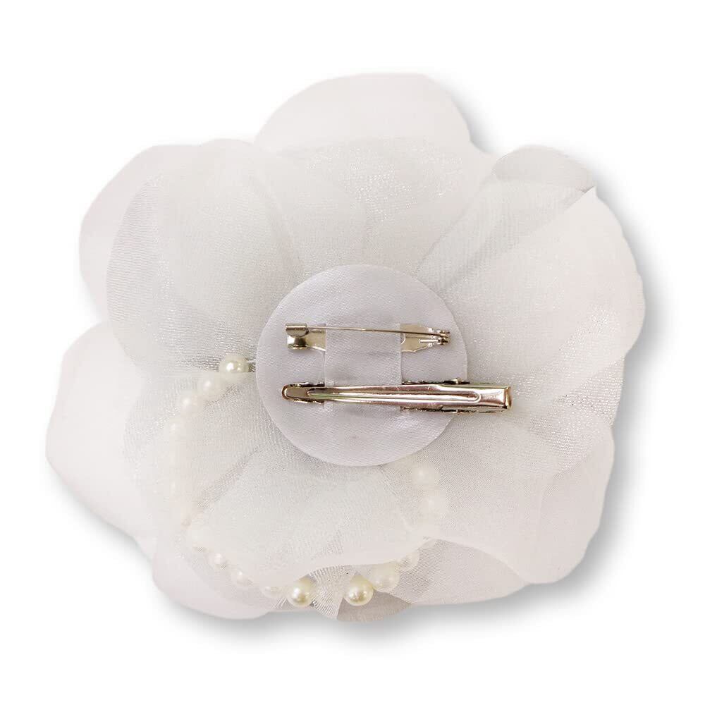 サイズ:直径約12㎝(製品により多少の誤差が生じる場合がございます。) 材質:合成繊維、パール 金具:合金、コサージュピンとピンの2WAYです 軽い素材を使っていますので、ボリュームがあるのに胸元の重さを感じさせません。