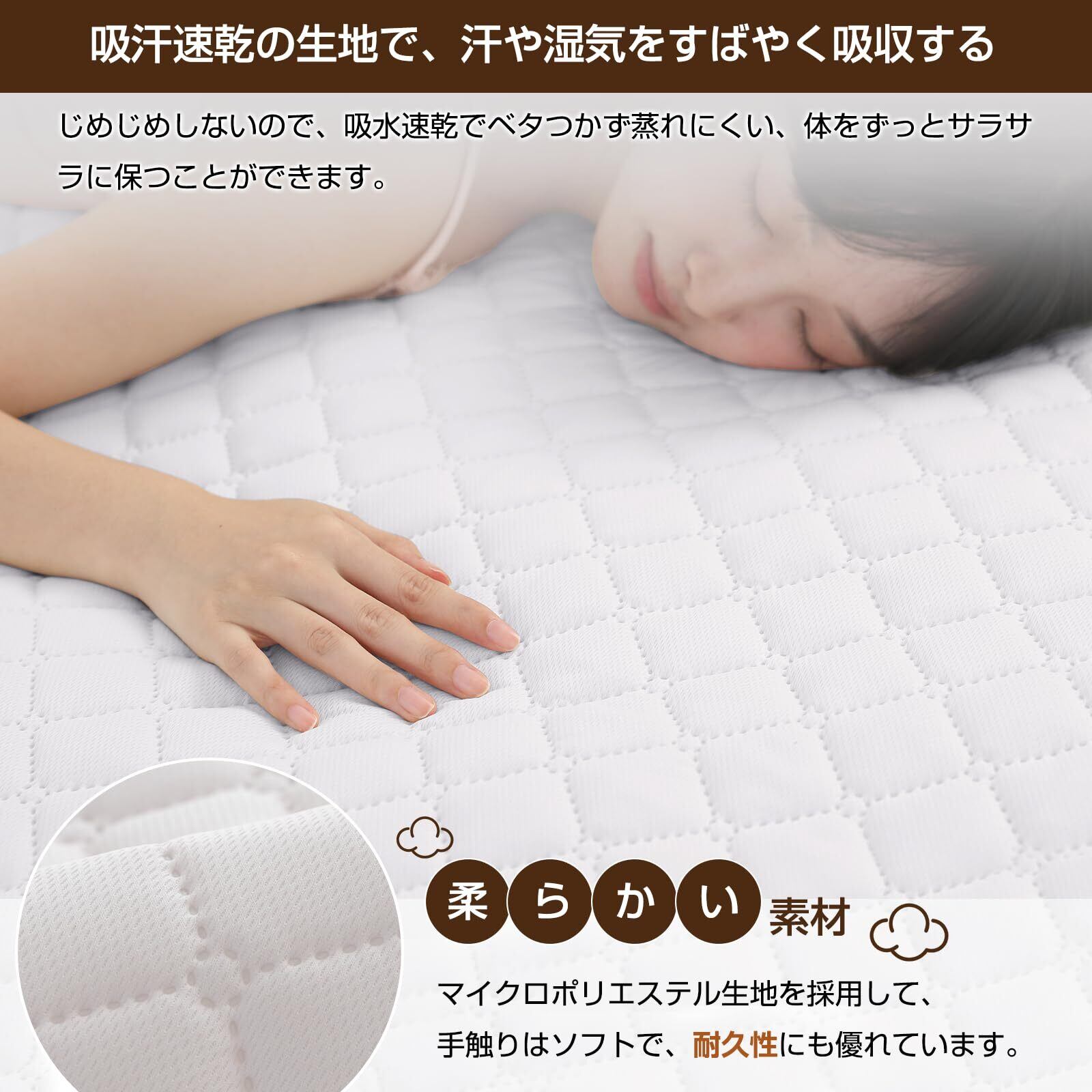 【柔らかい素材】ベッドパッドはマイクロポリエステルを採用し、柔らかいです。爪などの引っかかりを防ぐため、超音波キルティングでしっかりした縫製して、ペットや小さいお子さまにも安心です。耐久性に優れ、長くお使いいただける商品です。