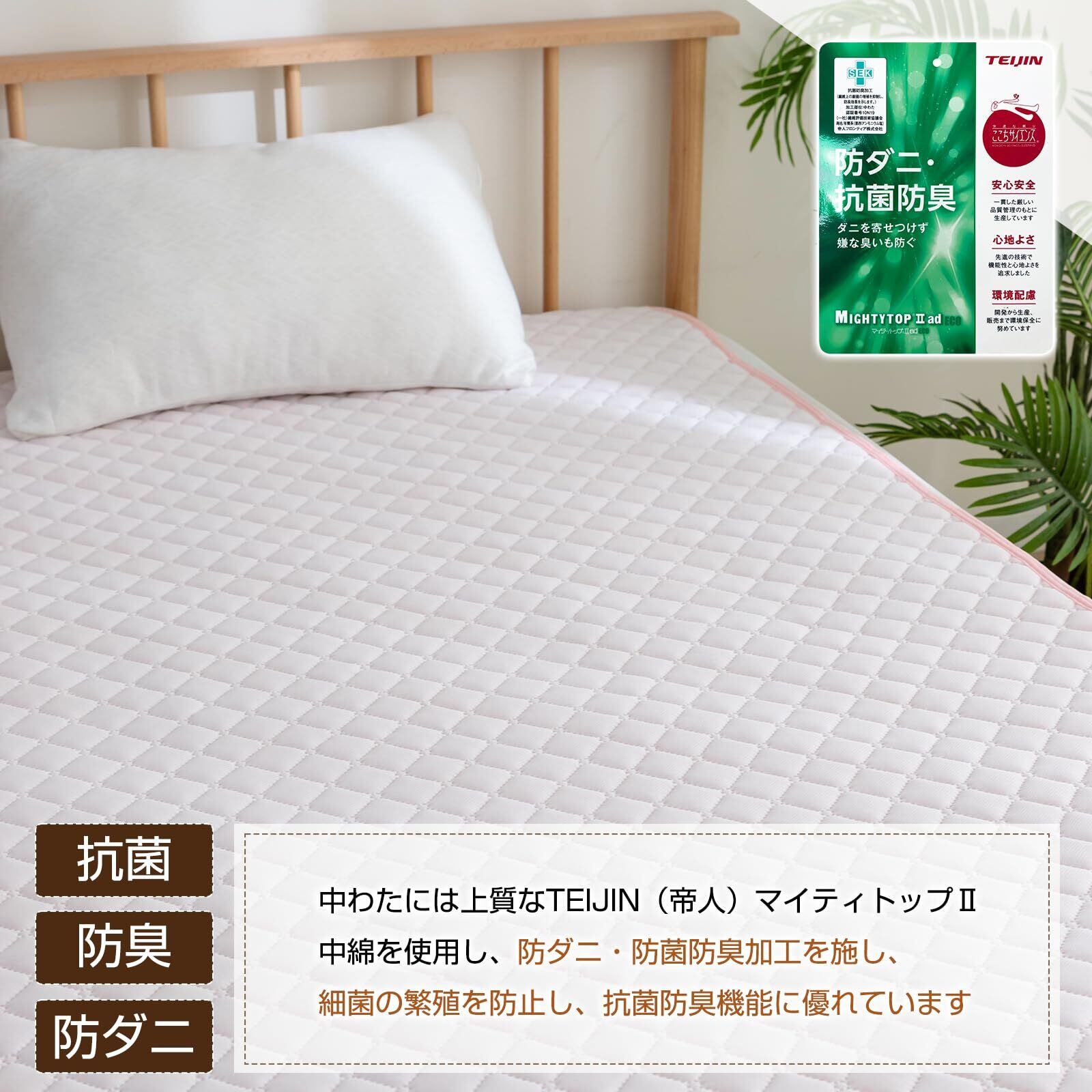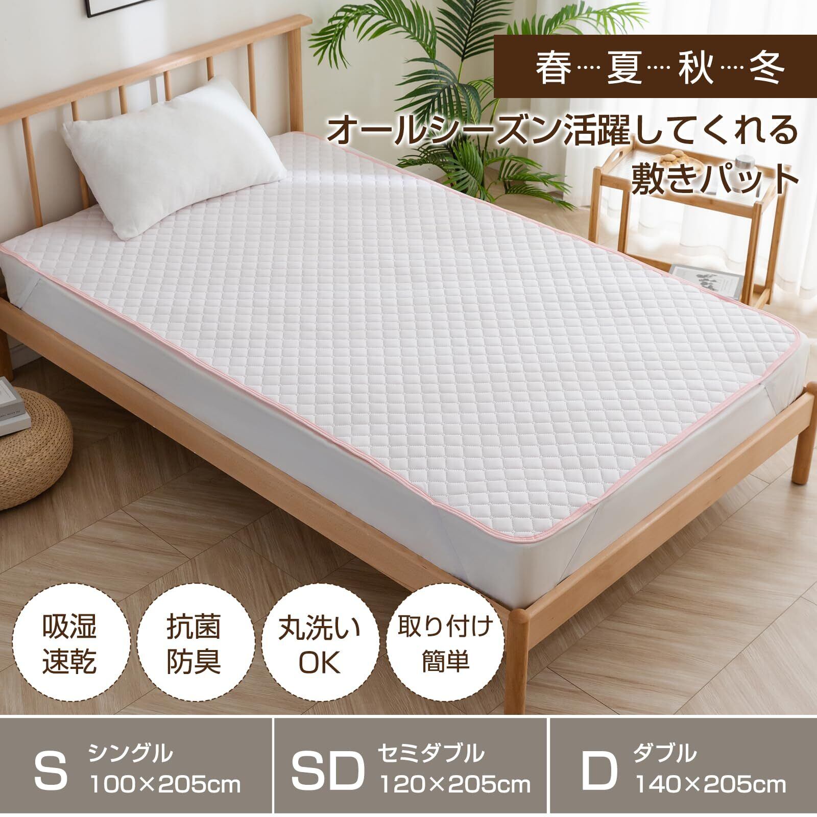 敷きパッド セミダブル ベッドパッド あったか 春 夏 秋 冬 オールシーズン使える 洗える しきぱっと 肌触りよい マットレスパッド 吸湿速乾 抗菌 防臭 防ダニ加工 SEK認証 静電気防止加工 四隅ゴム付き 120×205cm ホワイト