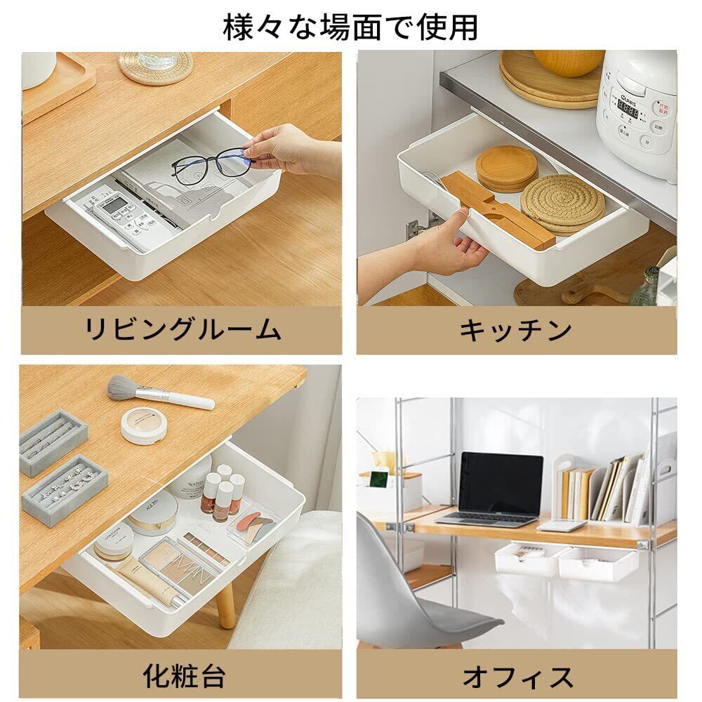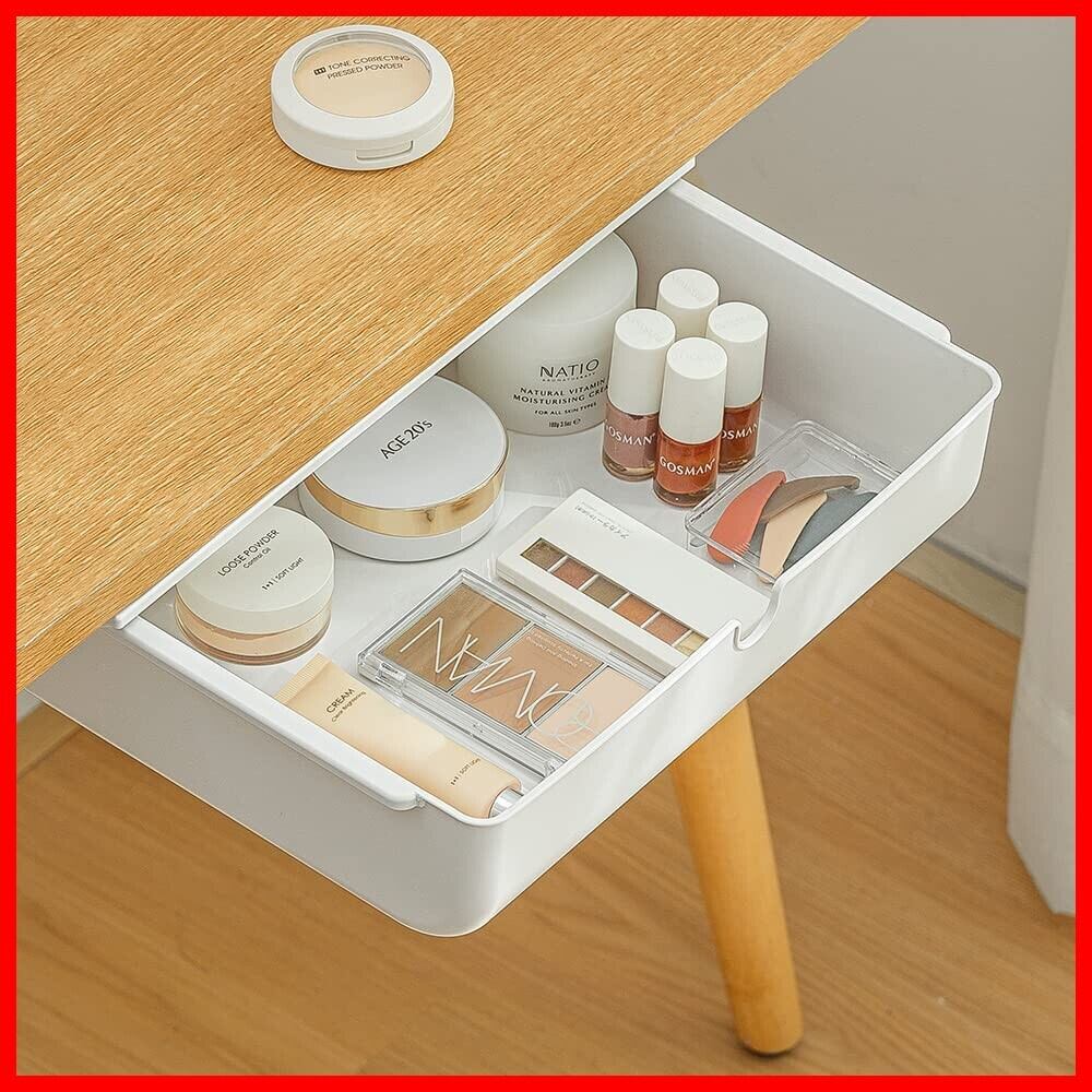 デスク下収納ボックス 引き出し式 ミニ小物入れ 整理トレイ 文房具 便利 ホルダー 強力粘着 工具不要 簡単設置 隠し引き出し(ホワイト)33*23.5*8.5cm