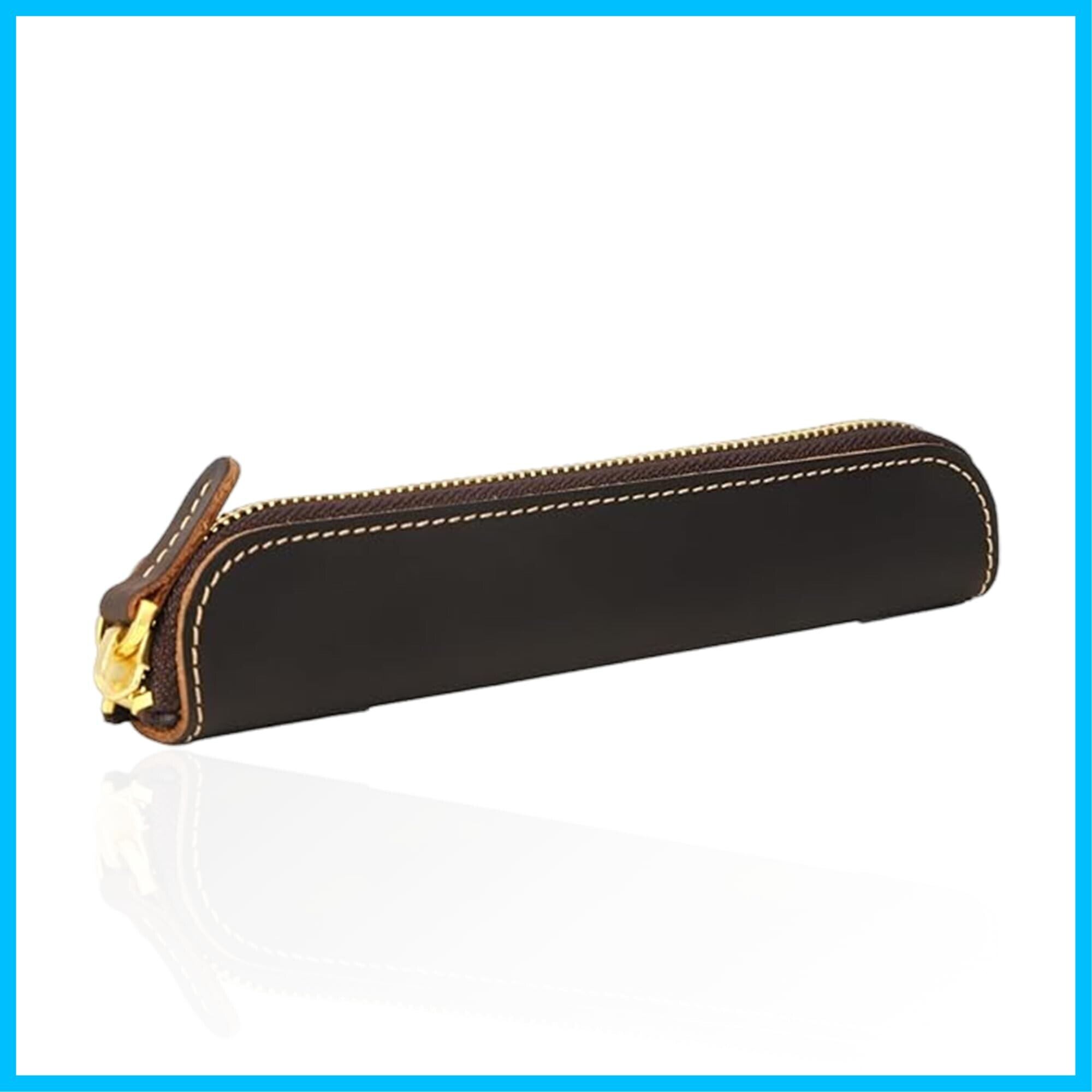 ぺンケース 筆箱 スリム 革 大容量 シンプル 大人 (牛革の最表面のみで作られたペンケース) (YKKファスナー採用) おしゃれ レザーペンケース メンズ 革筆箱 本革 軽量 ビジネス (1本用, こげ茶)