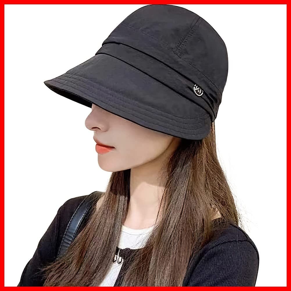 UVカット帽子 レディース 日除け帽子 小顔帽子 日焼け防止 サイズ調節 大きいサイズ 飛べにくい 通気 折りたたみ キャップ ハンチング帽 散歩 旅行 海辺 ハット 帽子 (JP, アルファベット, Free Size, ブラック)