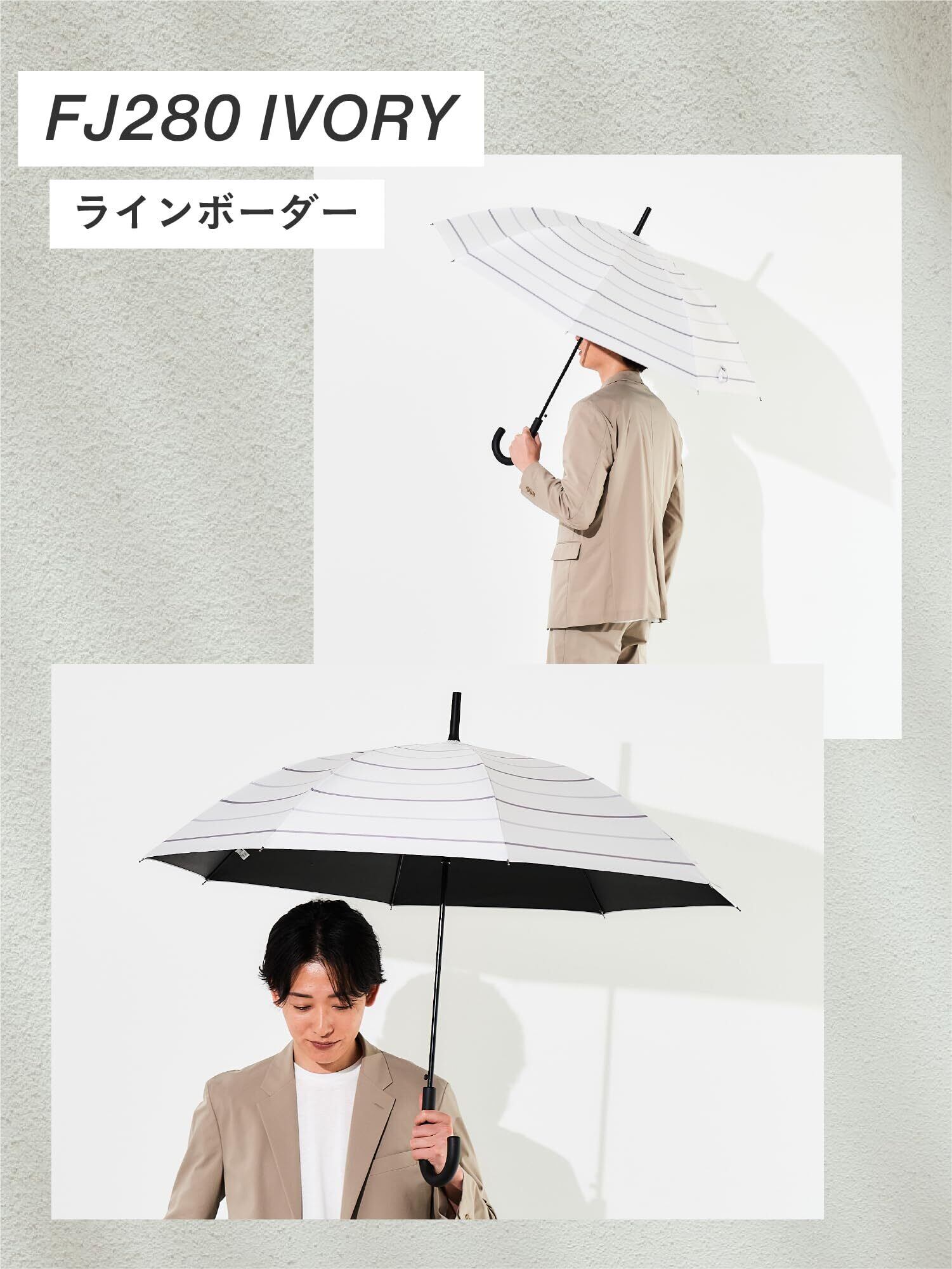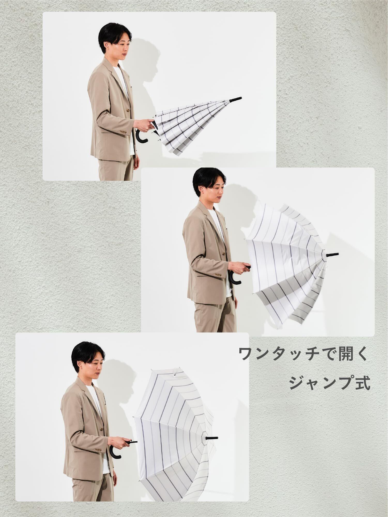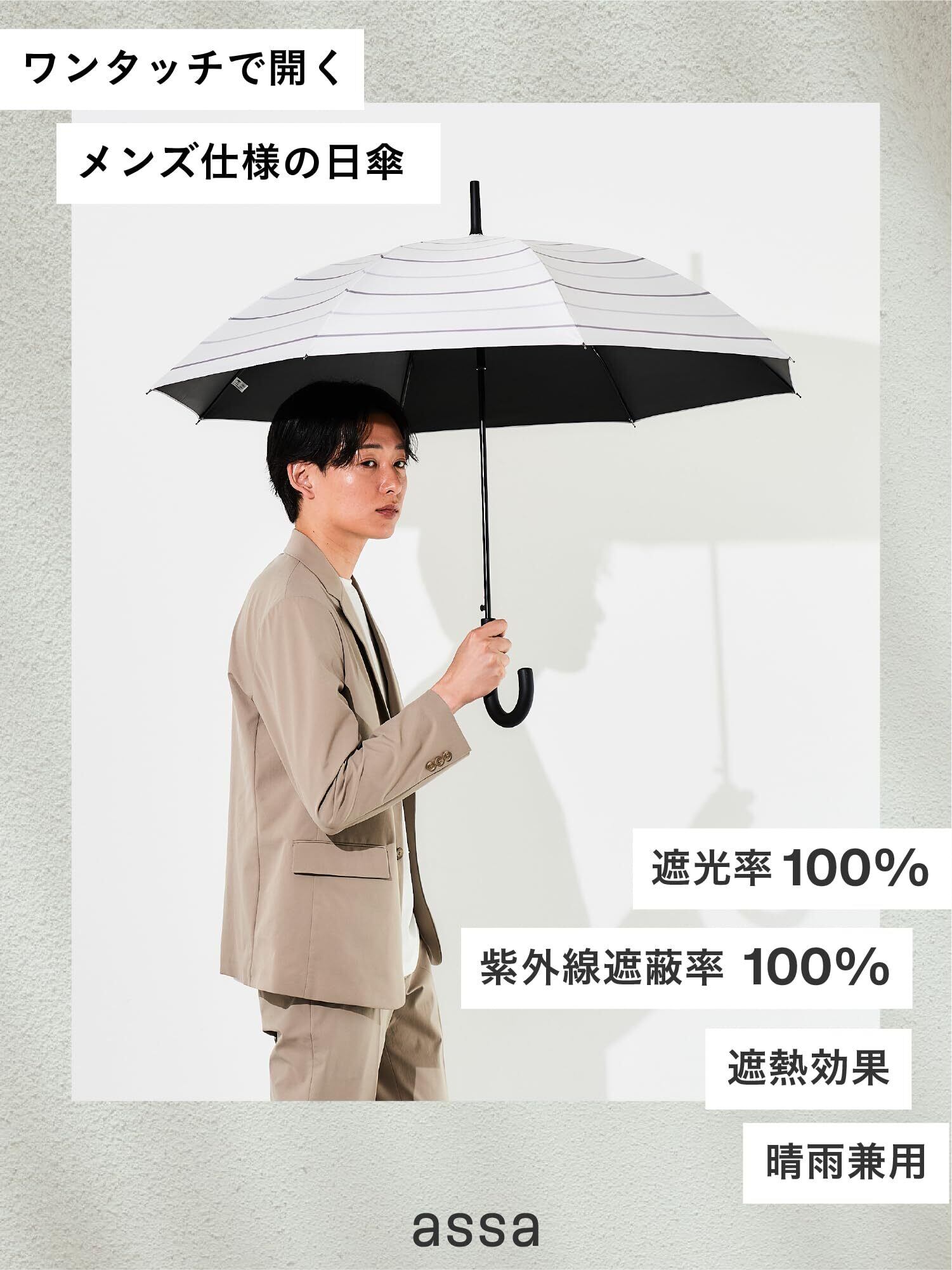 assa 傘 メンズ 長傘 大きい 晴雨兼用 男性用 傘 遮熱効果 熱中症対策 遮光 100% UVカット 日傘 グラスファイバー ワンタッチ ジャンプ傘 FJ (FJ280/アイボリー)