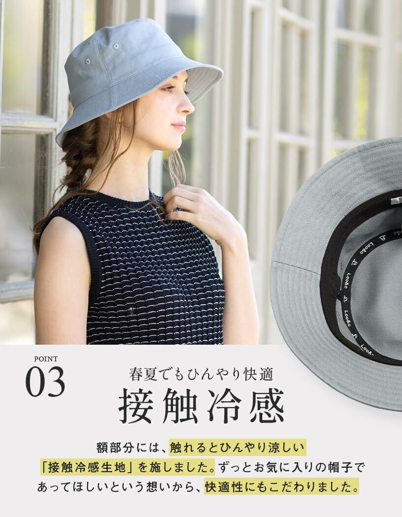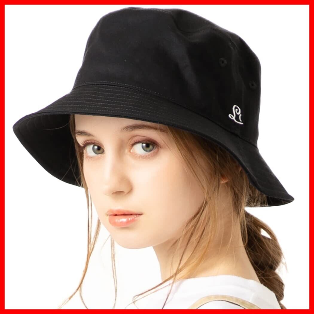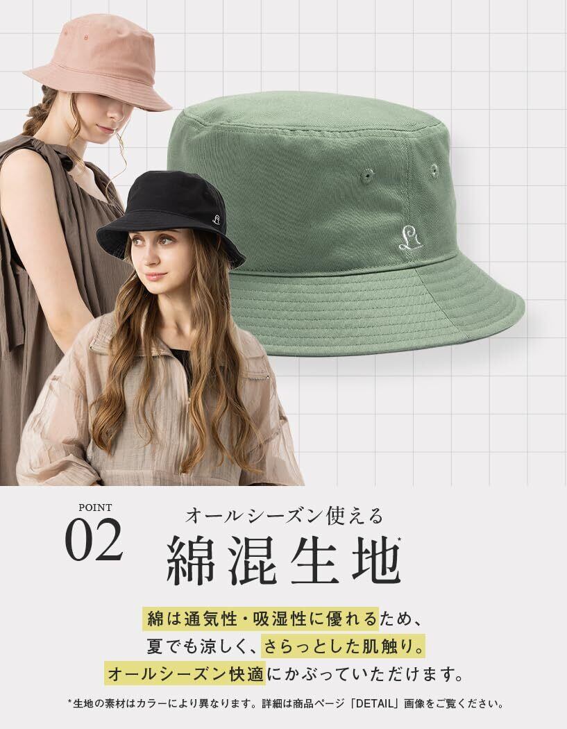 帽子 レディース 綿100%バケットハット 大きいサイズ ハット uvカット 接触冷感 完全遮光 紫外線対策 オールシーズン サイズ調整可能 (ブラック, XL(61-63cm))