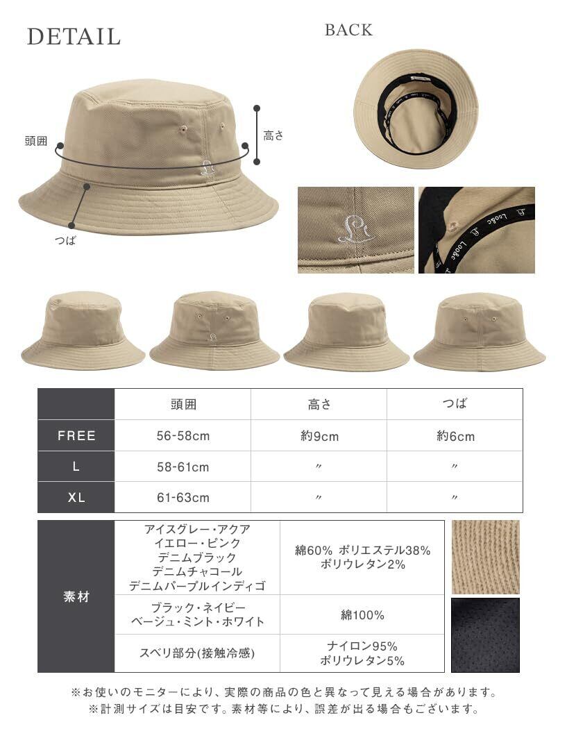 頭囲 : フリー(M)サイズ 56-58cm Lサイズ58-61cm XLサイズ61-63cm
