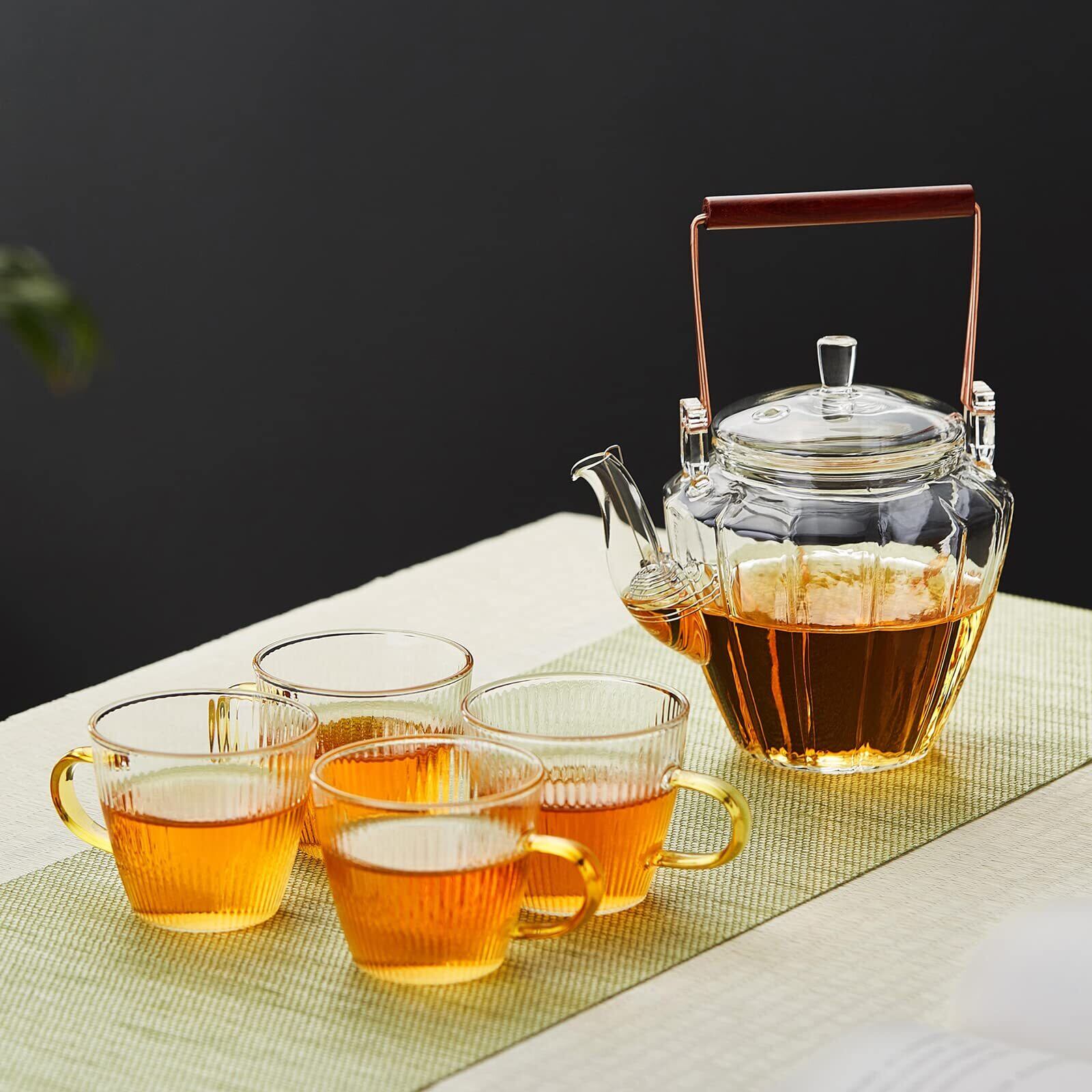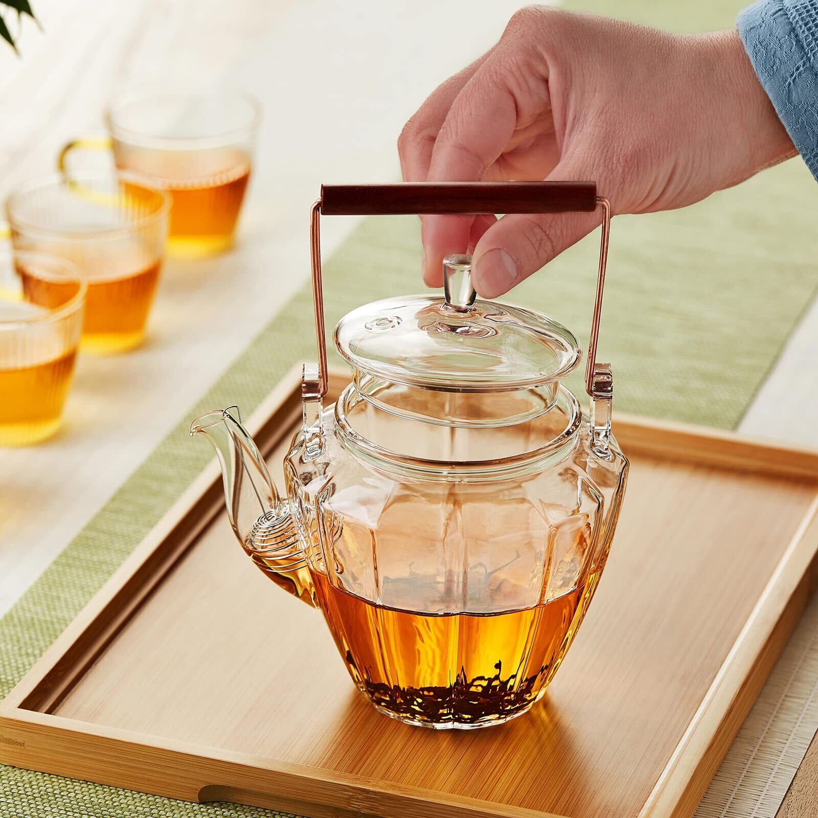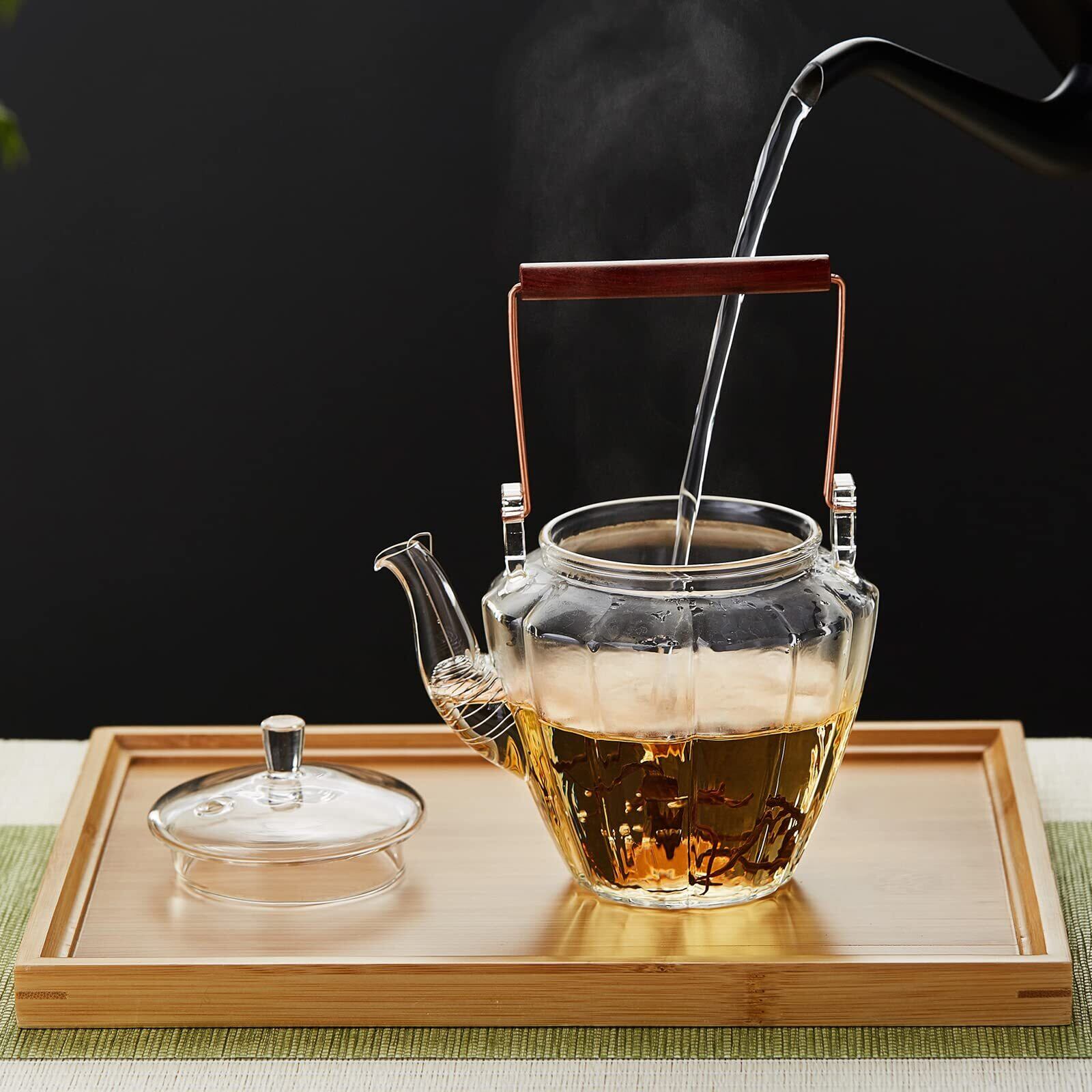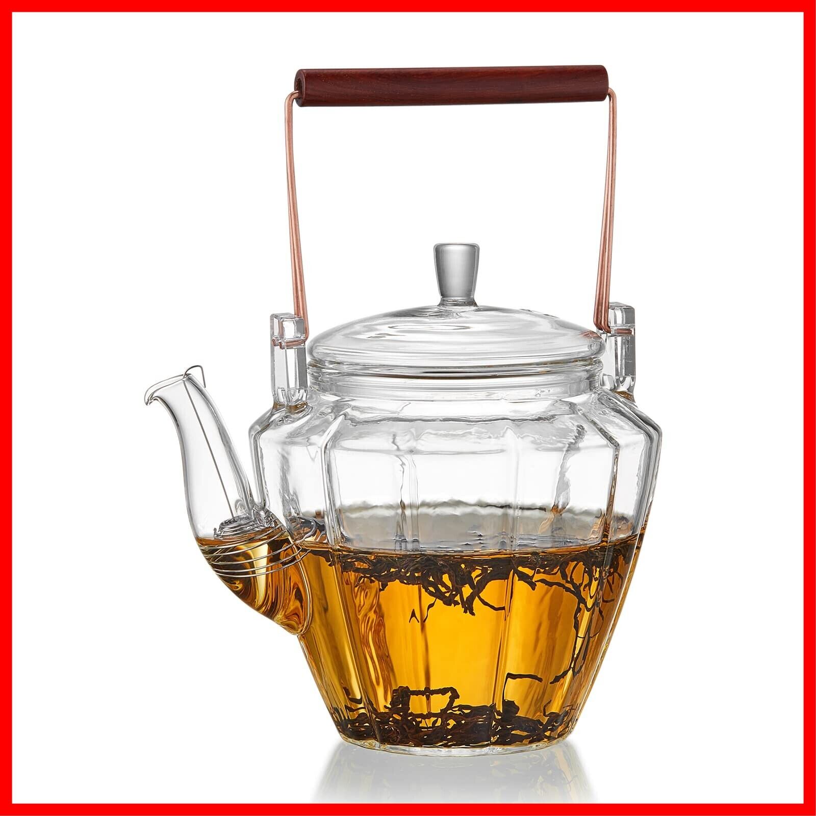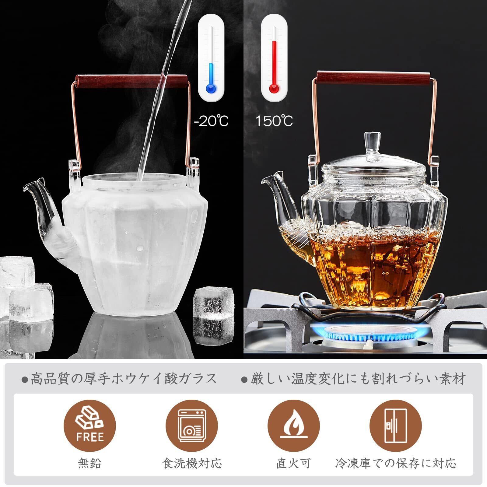 ポカロティー 菊紋耐熱ガラスティーポット上手型 満水容量 直火対応 耐熱 紅茶 緑茶 フルーツティー リーフティー 550ml (高さある)