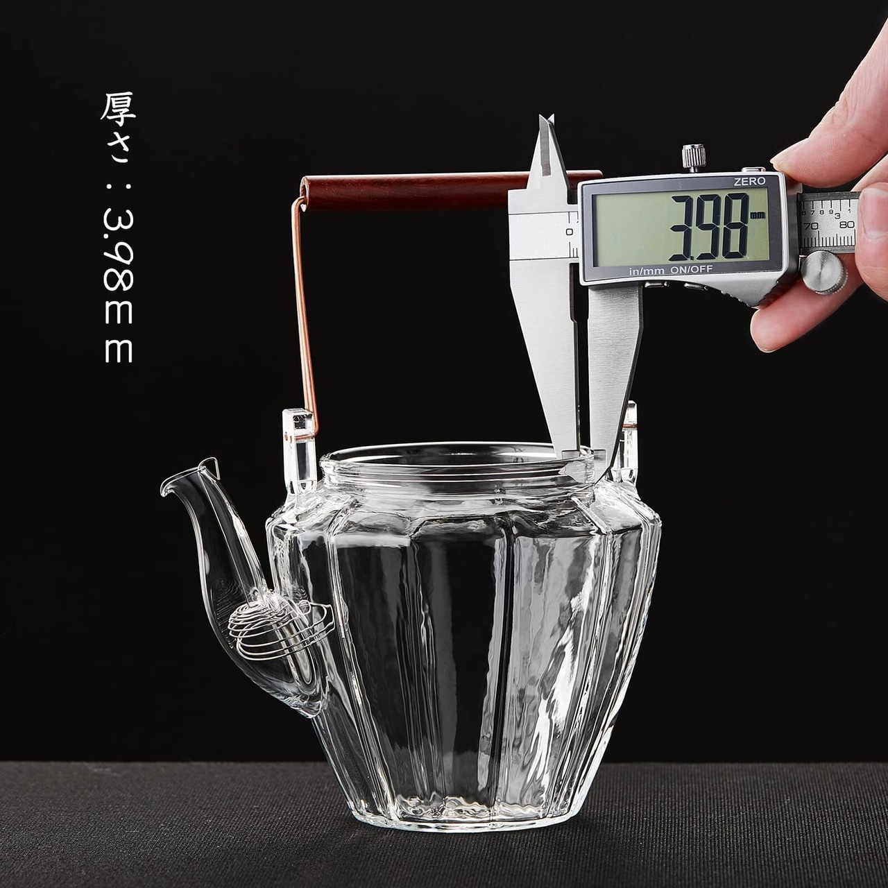厚さは約3.98mmと強度が高いので割れにくくて安心。 銅製の持ち手がおしゃれで、直火対応で満水容量550mlの大容量です。