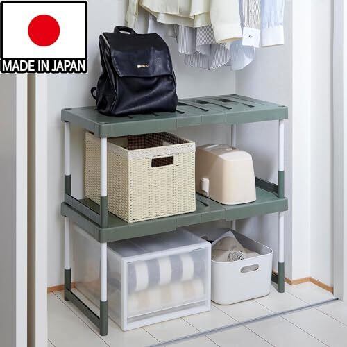 Belca 日本製 収納棚 クローゼット・押入れフリーラック 伸縮タイプ 2台入り 幅76.5~92×奥行37×高さ35・40cm エコグリーン CO-RG2
