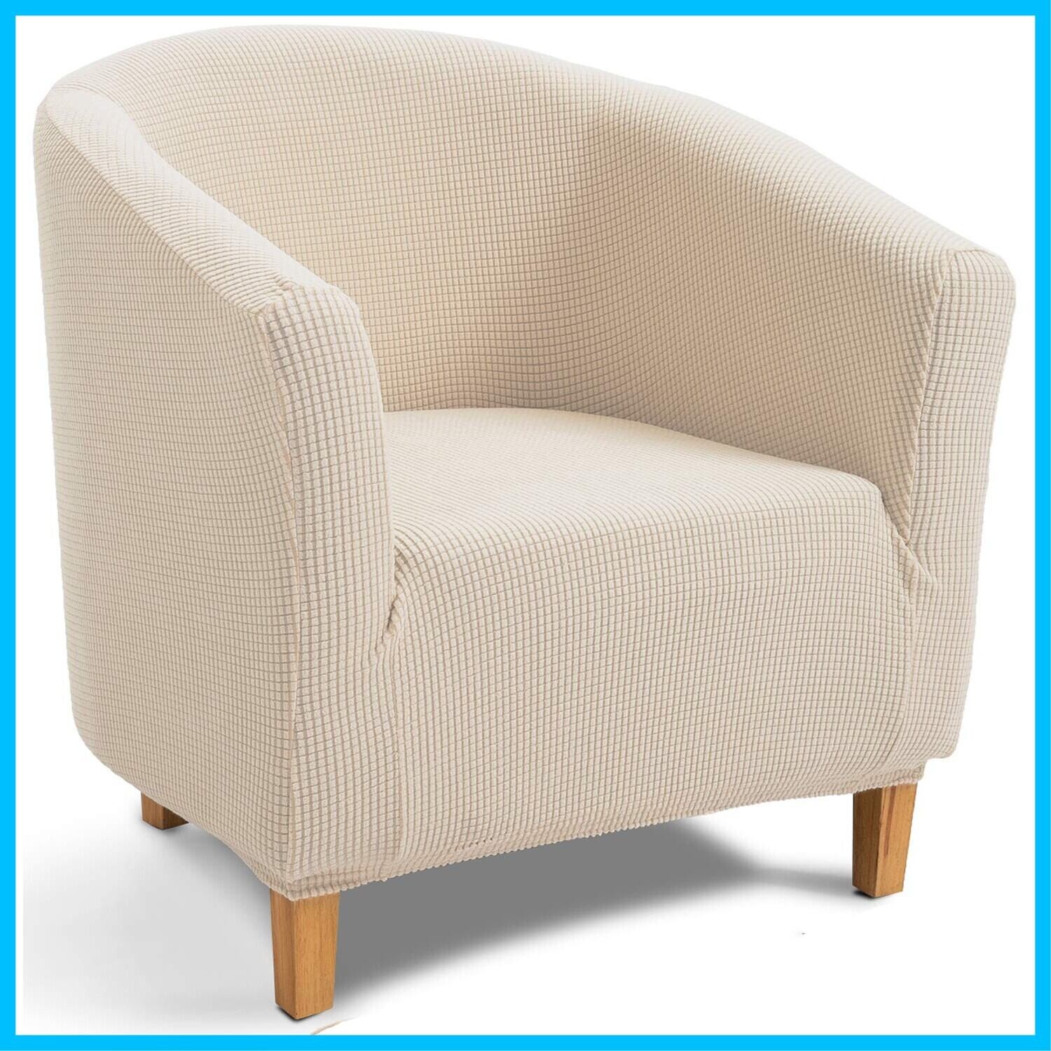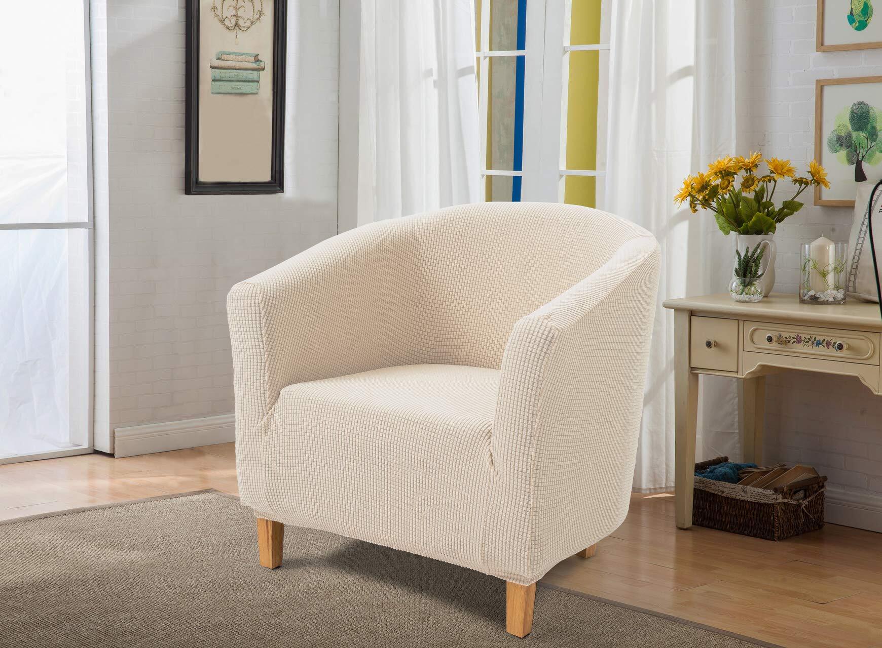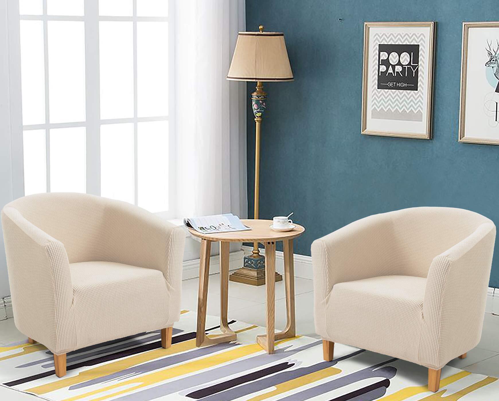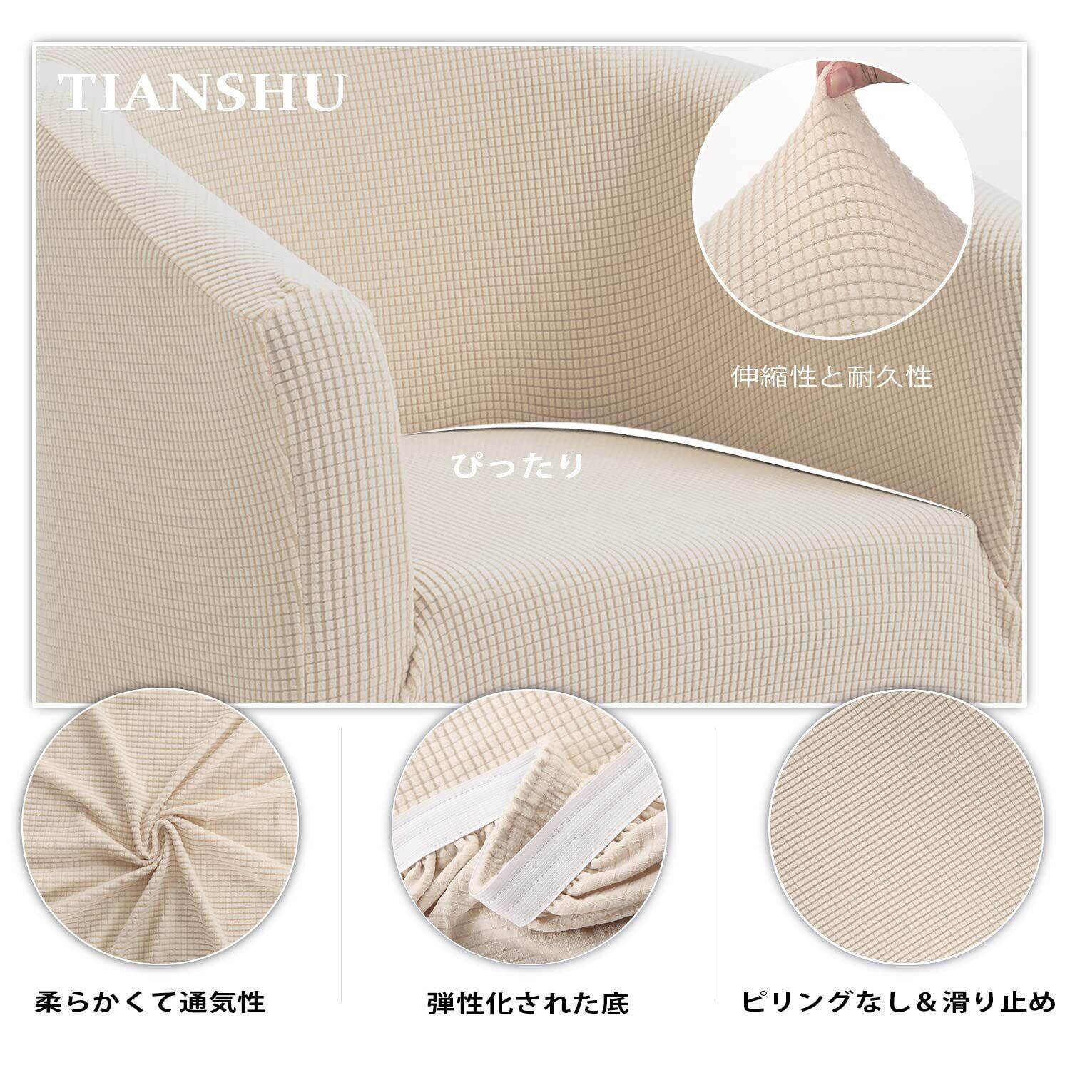 TIANSHU ソファーカバー 1人掛け, 肘付き 一体型 きチェアカバー 無地 縦横弾力 ストレッチ フィットタイプ 滑り止め 柔らかい 伸縮素材伸び良く 四季適用 超便利 (チェック柄ポリエステル生地, ベージュ)