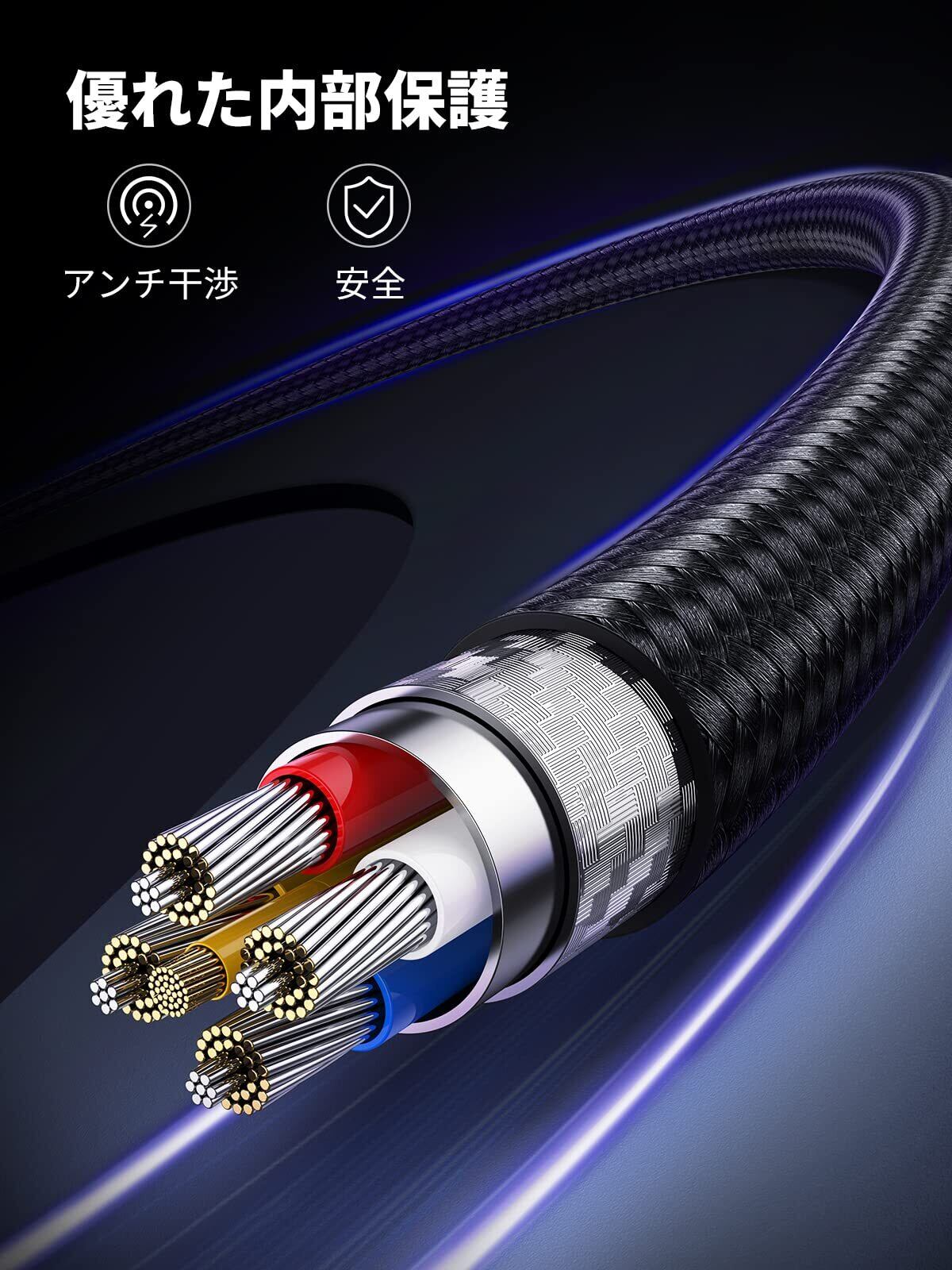 優れた高耐久性:コネクタ部を強化されて断線防止になり、10000+の抜き差しテスト済みの挿抜の耐久性が90%向上します。丈夫なナイロン編みで、絡みにくく、十分な柔軟性もあり、取り回しやすいです。