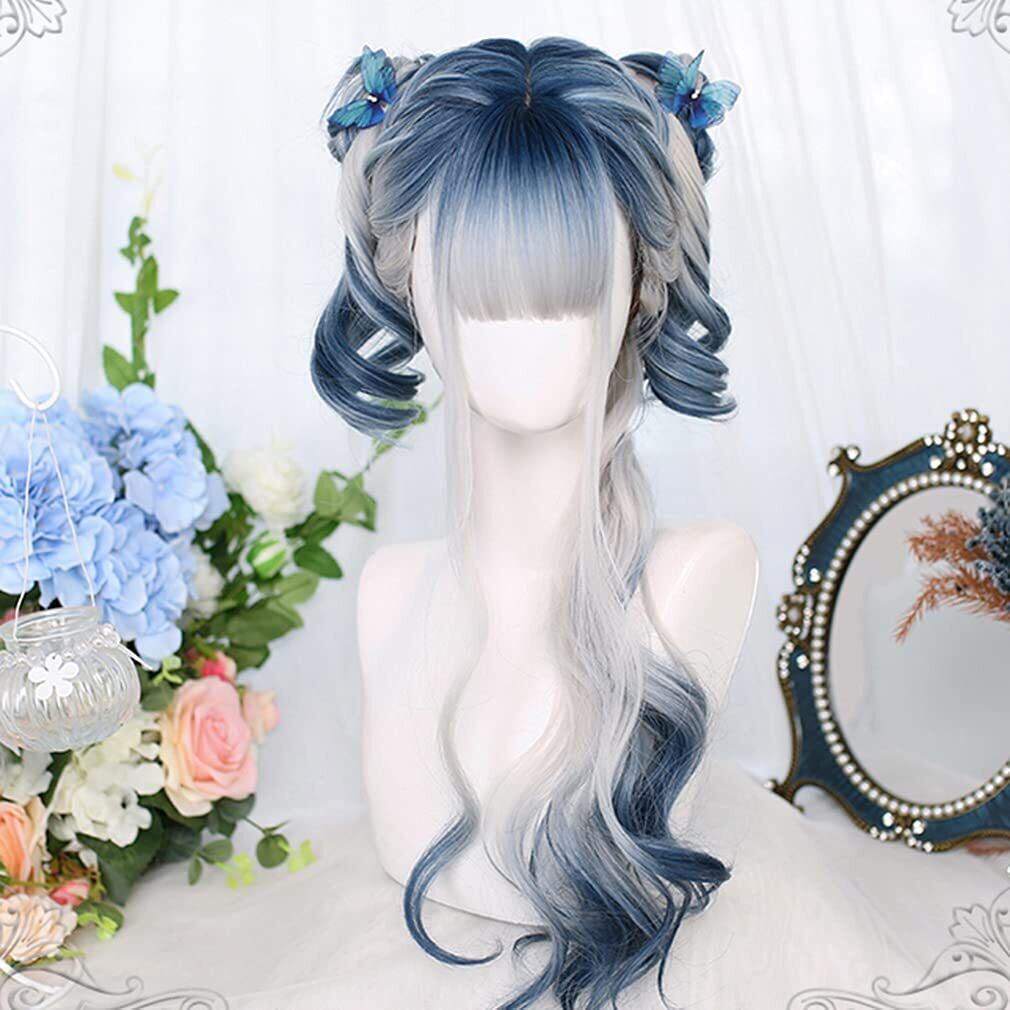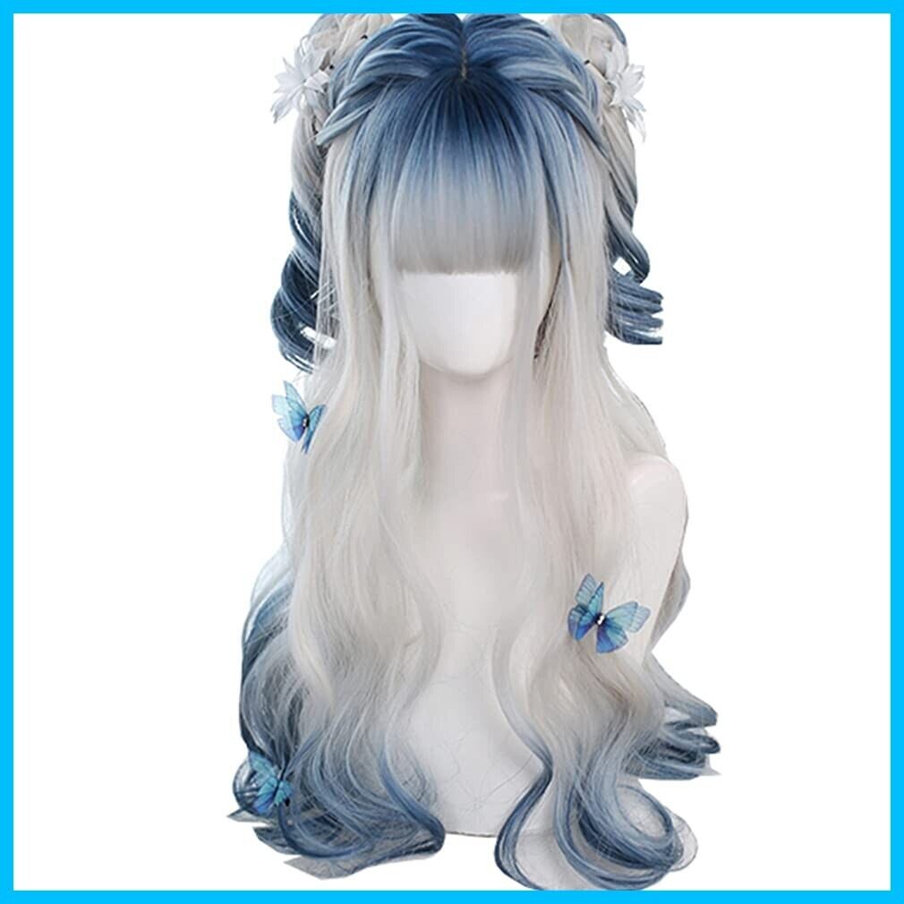 ロリータ ウィッグ 原宿風 GAL系 ゴスロリ コスプレ カツラ 白 水色 メッシュ ゴシック ロング 森ガール ゆめかわいい お姫 小顔 パーティー ハロウィン 仮装 日常 かつら wig