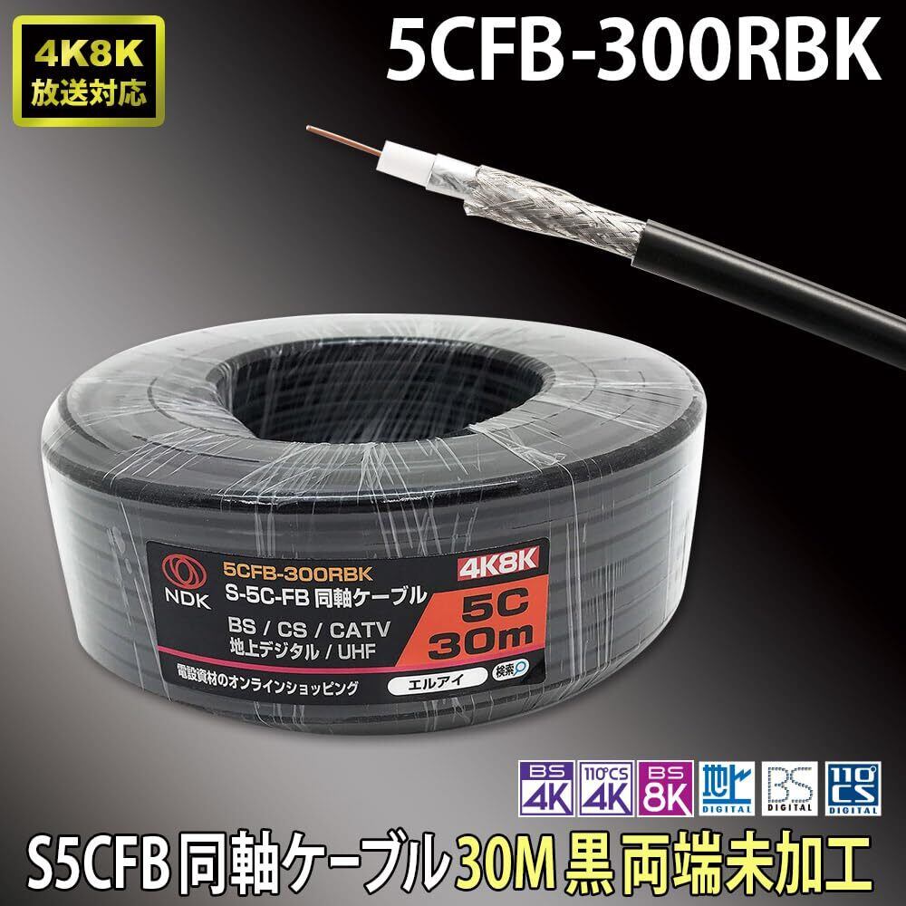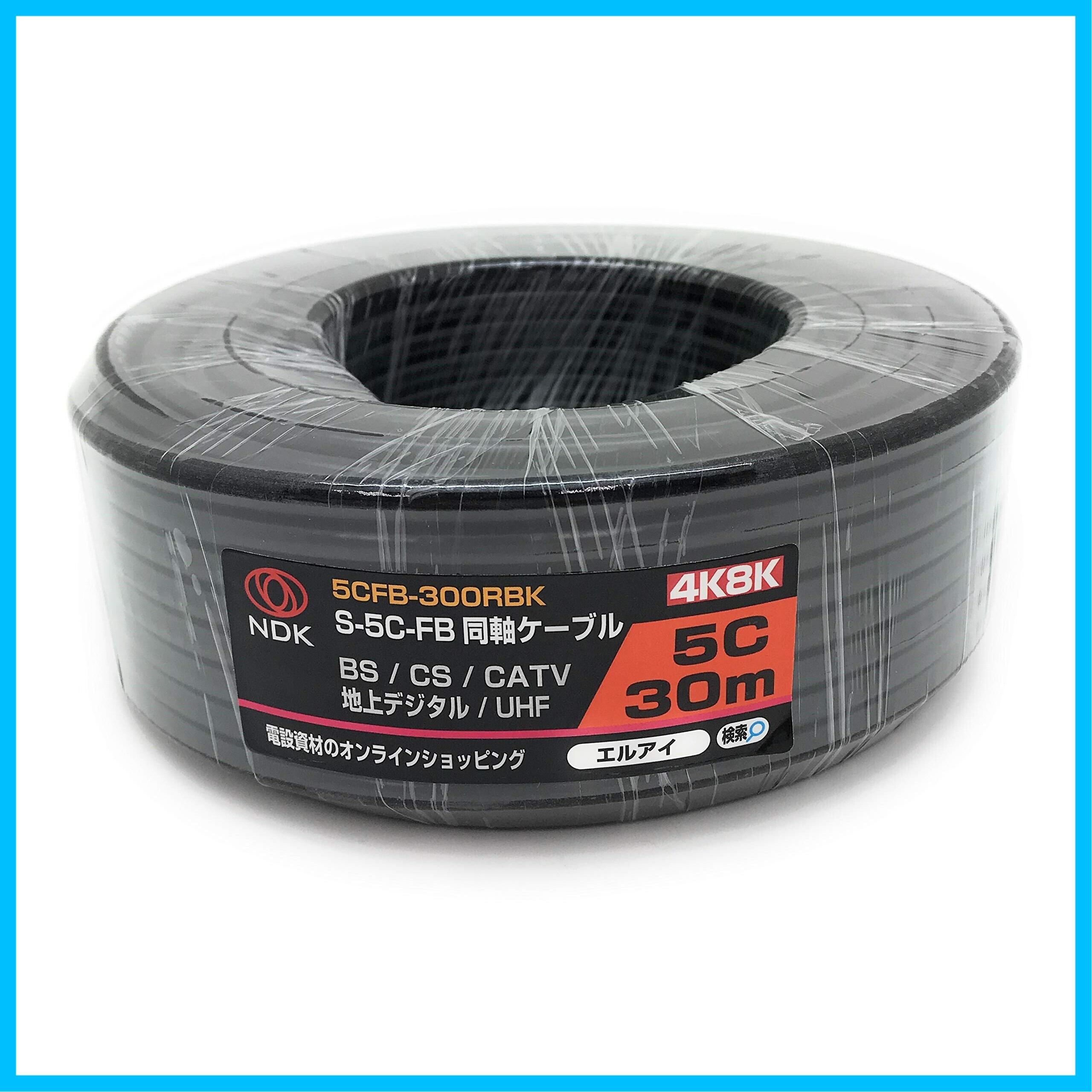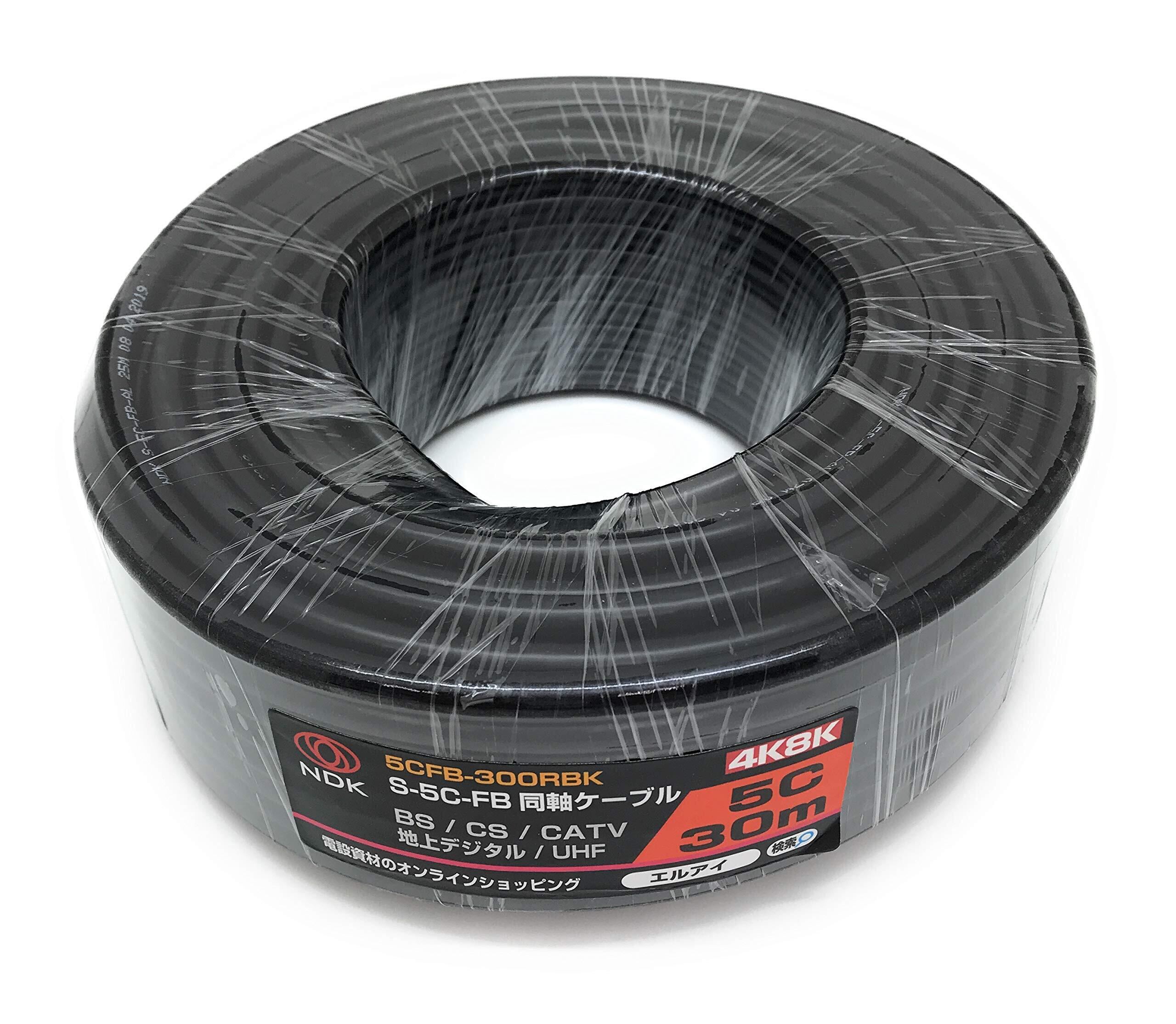 二幸電気工業 S5CFB 同軸ケーブル 30m 黒 ( 2K 4K 8K BS CS CATV 地デジ ) アンテナケーブル 両端未加工 純銅素材の芯線導体 (5CFB-300RBK)