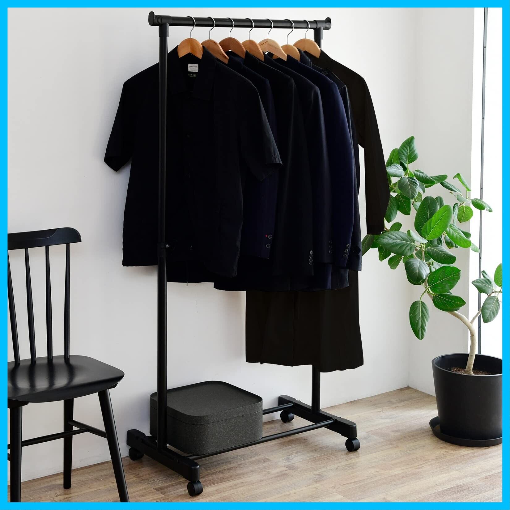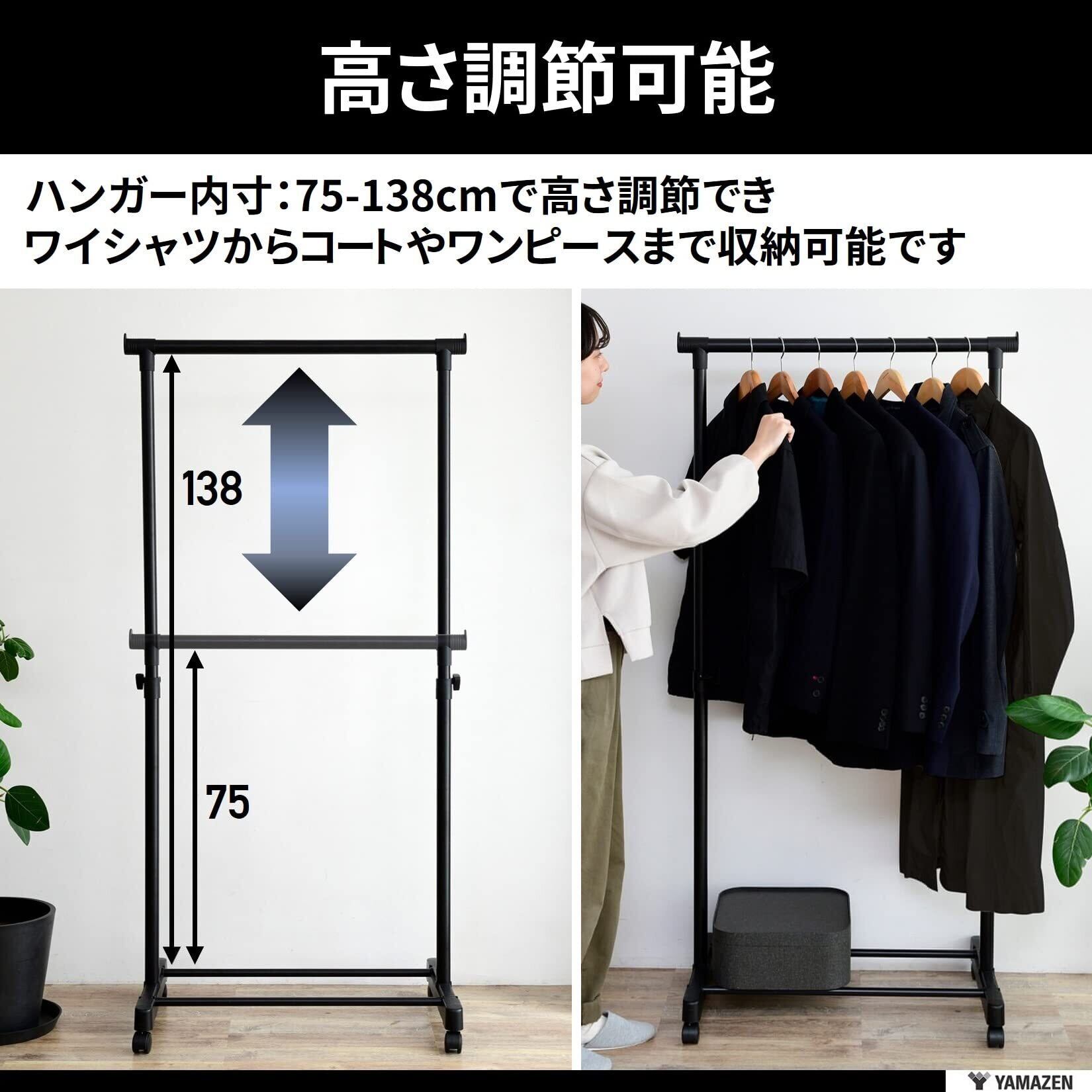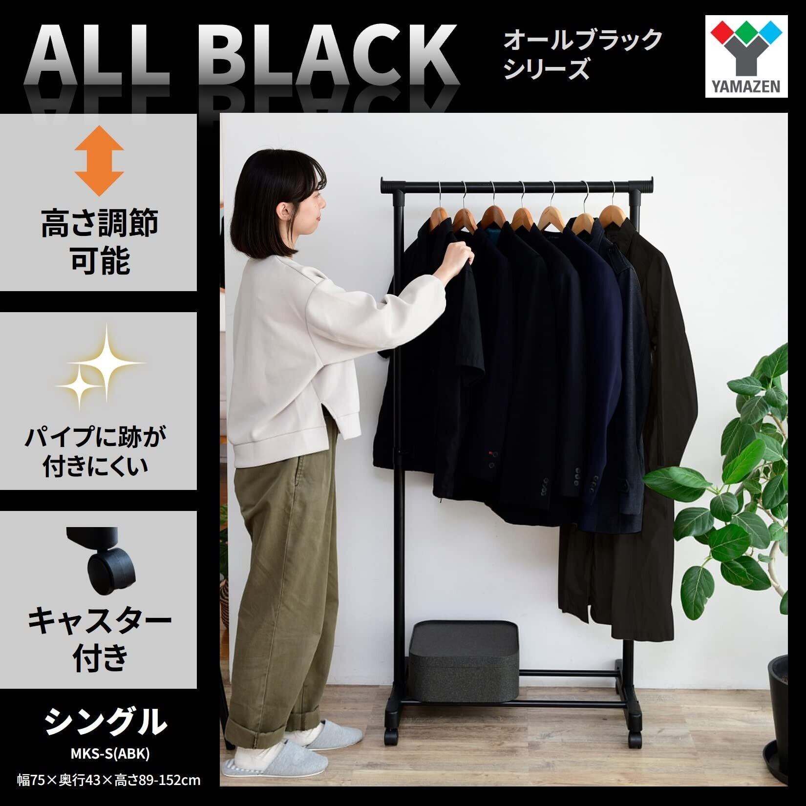 山善(YAMAZEN) ハンガーラック パイプハンガー キャスター付き 縦伸縮 シングル ハンガー 幅75×奥行43×高さ89-152cm 組立品 オールブラック MKS-S(ABK)