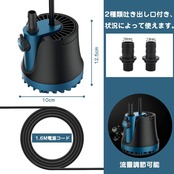 【規格】入力電圧:AC 100V/60Hz 電力:25W 最大揚程:1.8Mぐらい 吐き出し口外径:13mm&16mm 最大流量:1500L/H 騒音クラス:40デシベル以下 電源コードの長さ:1.9M