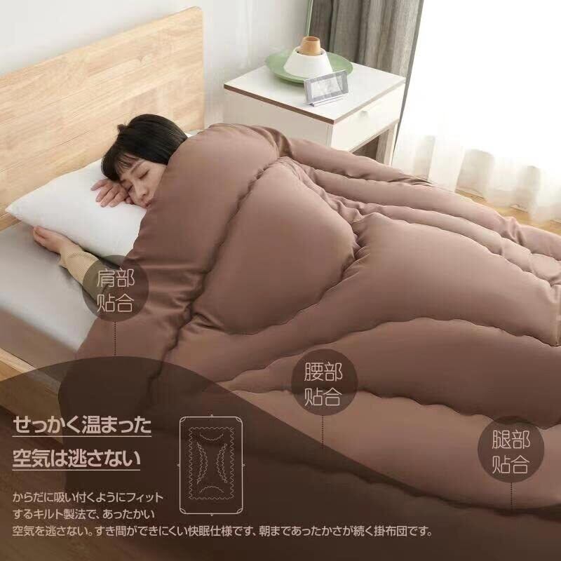 【暖かくて軽い! オールシーズン 掛け布団】薄くて軽いのに暖かい!暖かさをキープする同時に、圧迫感を与えることはありません。3D中空中綿を使用した掛け布団は羽毛の臭いが苦手、羽毛にアレルギーがある方におすすめ、重すぎず、軽すぎず、ちょうどいいボリュームでオールシーズン使えます。