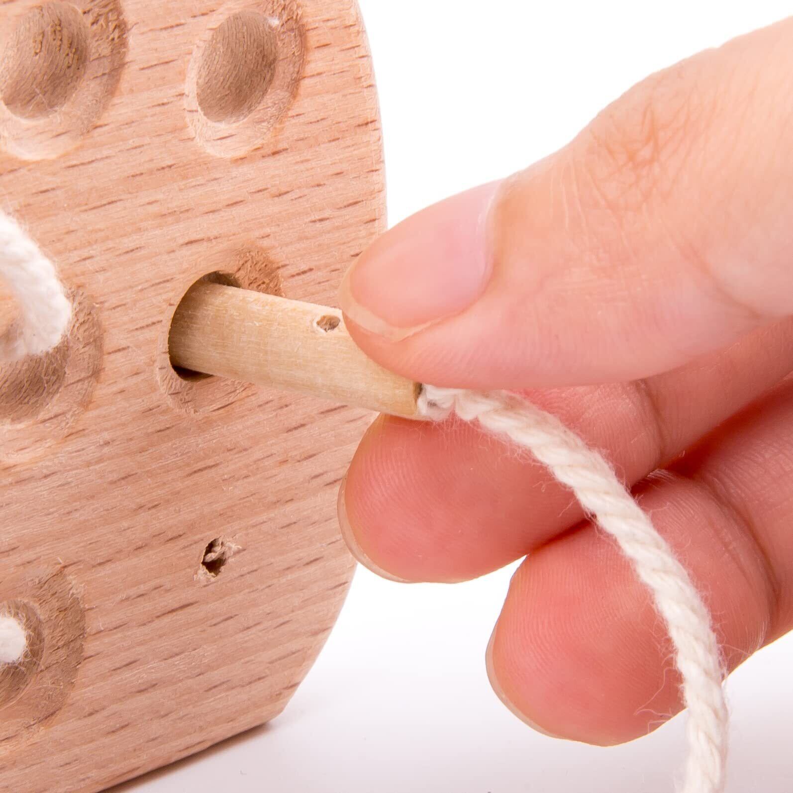 【安心・安全な素材】ひも通しおもちゃは安全な天然木でできています。職人が丁寧にサンディングしたので、おもちゃの表面や穴にバリがなく、とても滑らかで安心してお使いいただけます。また、適切なサイズと軽量により、小さなお子様にも最適です。