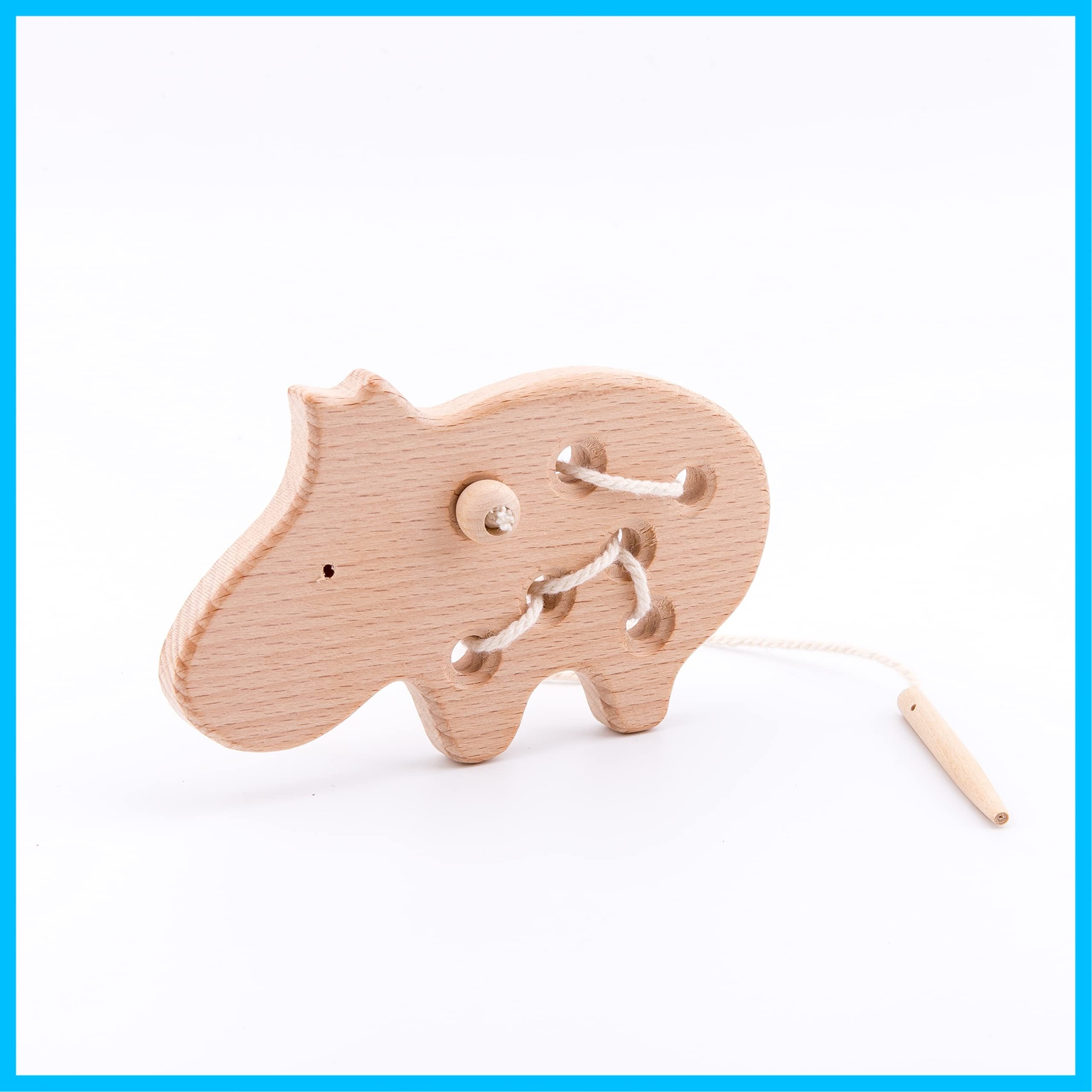 【プレゼントに】木製のひも通しおもちゃは、子供たちに愛されているかわいいカバの形です。高品質の天然木と滑らかな表面は、子供の柔らかい肌を傷つけず、安全の問題がなく、ご両親を安心させます。子供の早期発達のための学習、誕生日、出産祝いへの贈り物としてもおすすめです