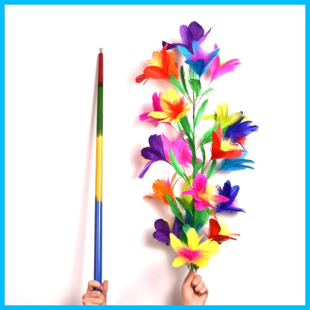 四つ色のある虹色の棒が大きい花束に変わる ステッキが花になる 21輪 魔法の棒が花束に変身 舞台用マジック道具 手品道具