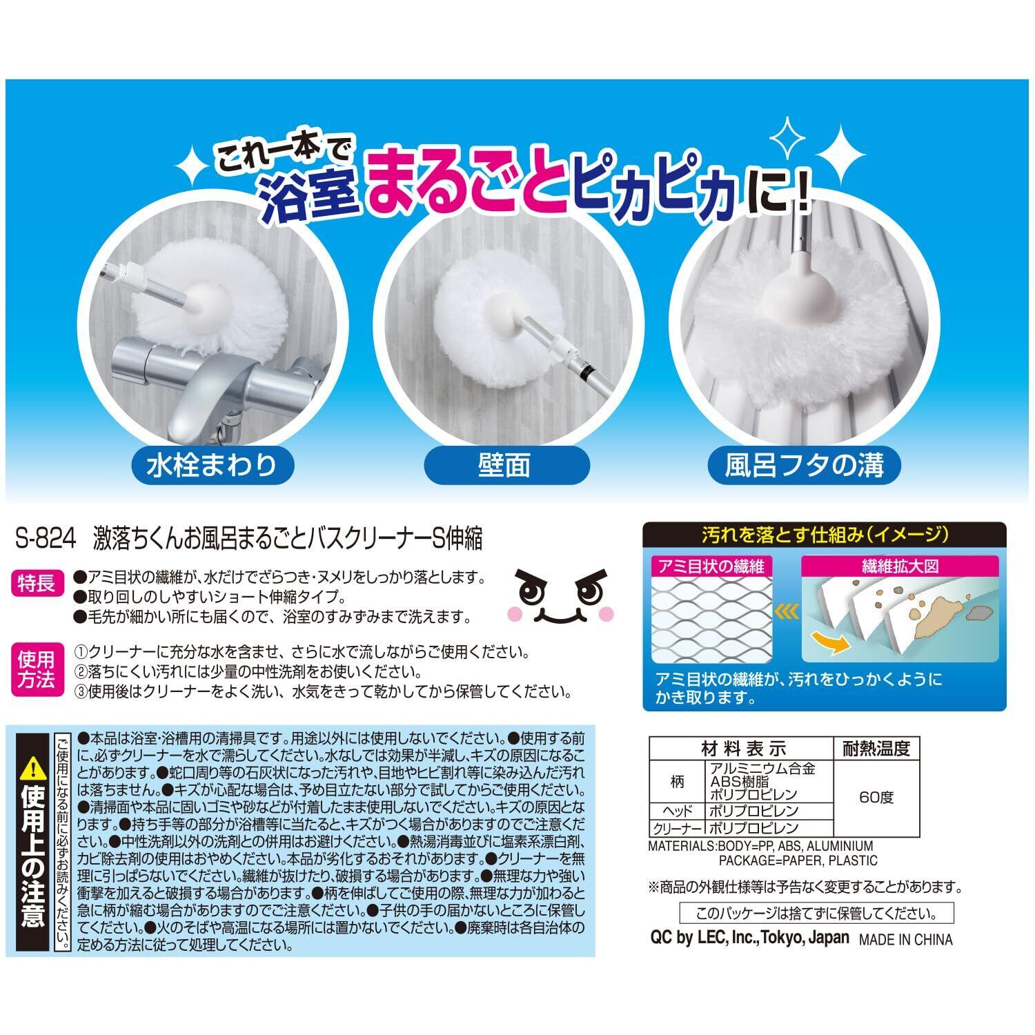 レック 激落ちくん お風呂 まるごと バスクリーナー ショート伸縮 47~68cm アミメ状の特殊繊維 バスブラシ お風呂掃除 ブラシ