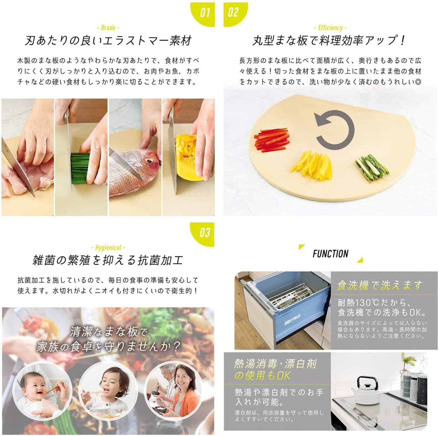 食洗機対応、熱湯消毒可、抗菌加工、漂白剤の使用可