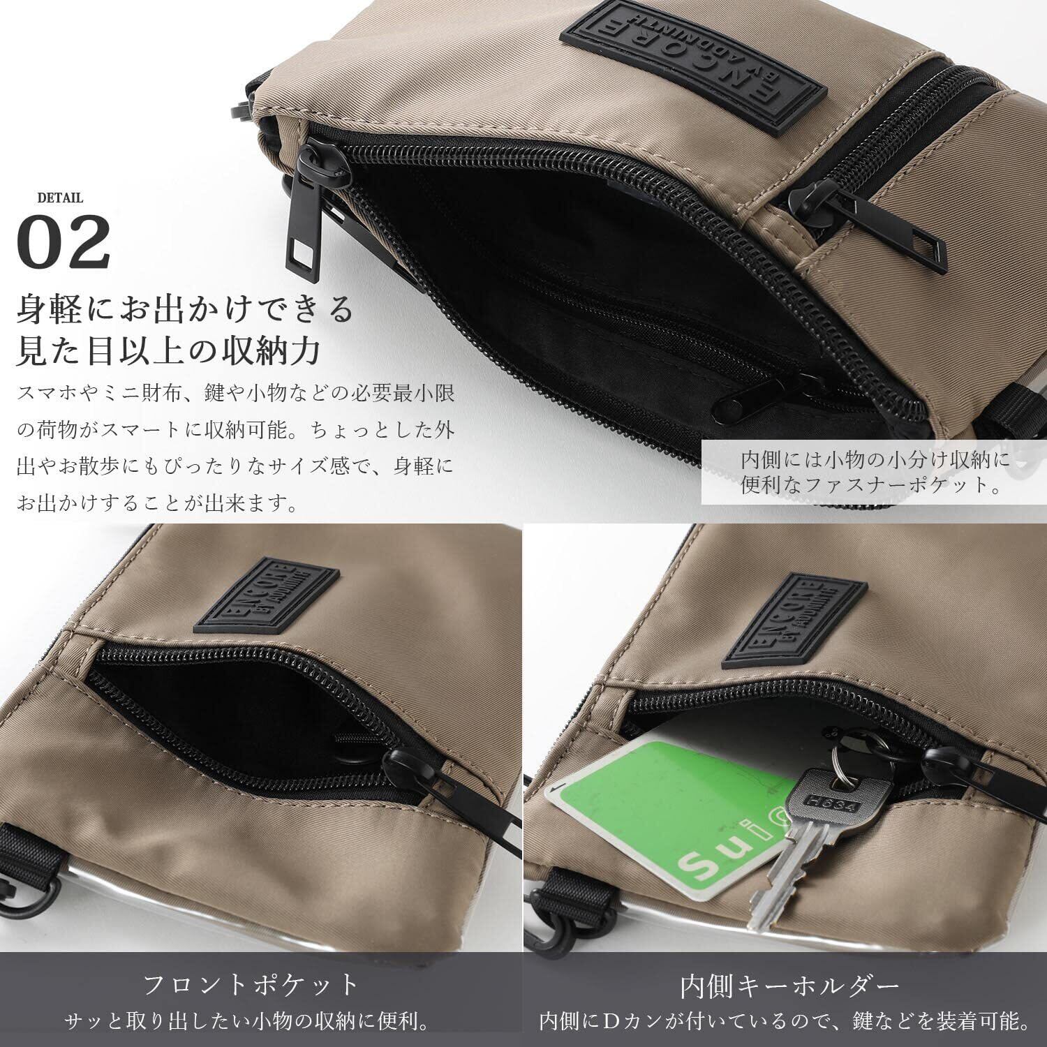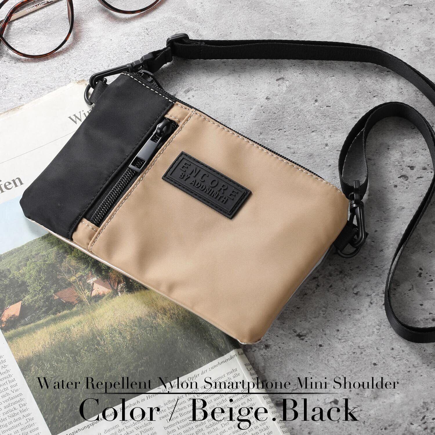 ミニ ショルダーバッグ メンズ レディース 小さめ 斜めがけ 撥水 軽量 薄い スマホショルダー スマホポーチ スマホ サコッシュ アウトドア おしゃれ 人気 ブランド (ベージュ/ブラック)