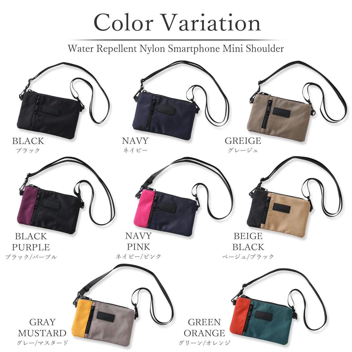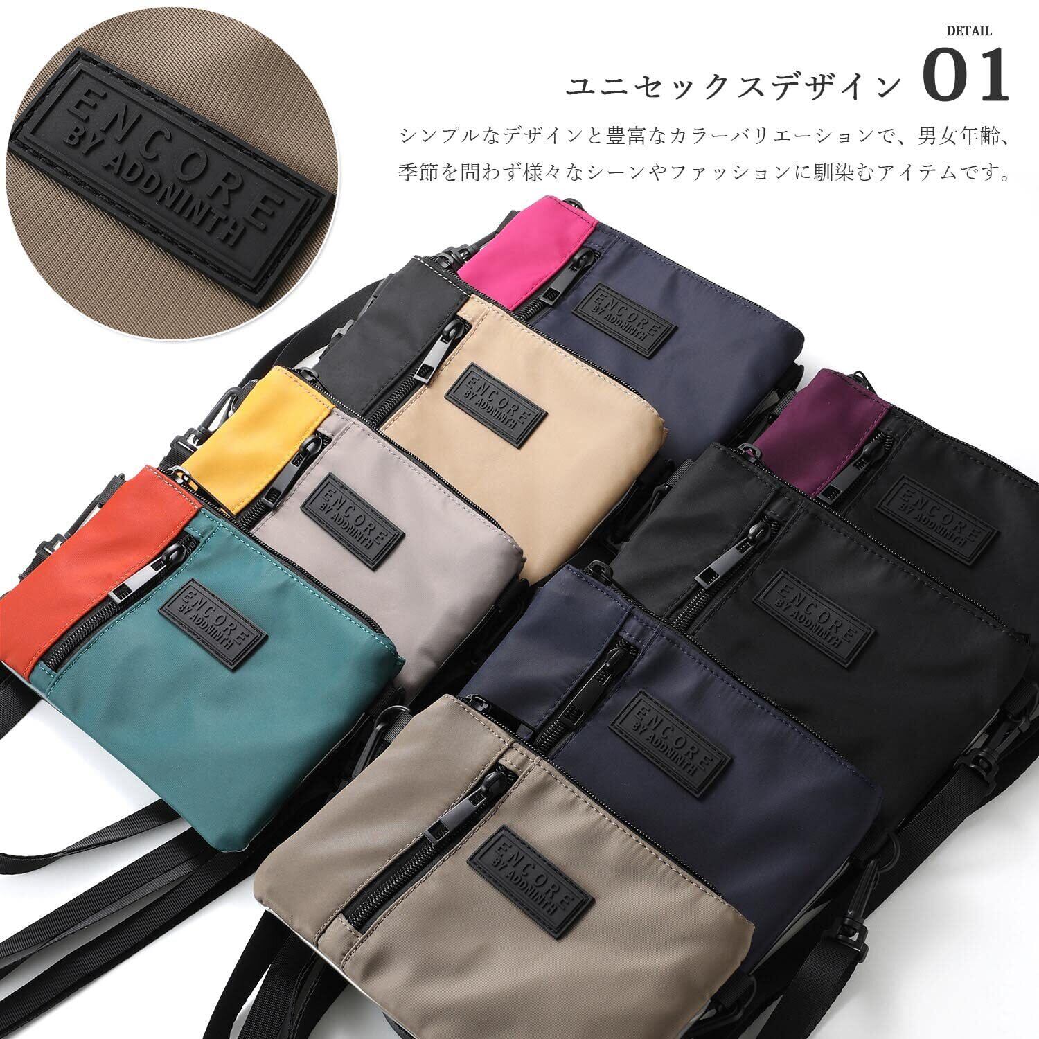 【ユニセックスデザイン】 撥水加工を施したナイロン生地を使用したスマホミニショルダー。 シンプルなデザインと豊富なカラーバリエーションで、男女年齢、季節を問わず様々なシーンやファッションに馴染むアイテムです。 自分用にはもちろん、プレゼントやギフトとしてもオススメです。 【身軽にお出かけできる】 スマホやミニ財布、鍵や小物などの必要最小限の荷物がスマートに収納可能。 ちょっとした外出やお散歩にもぴったりなサイズ感で、身軽にお出かけすることが出来ます。