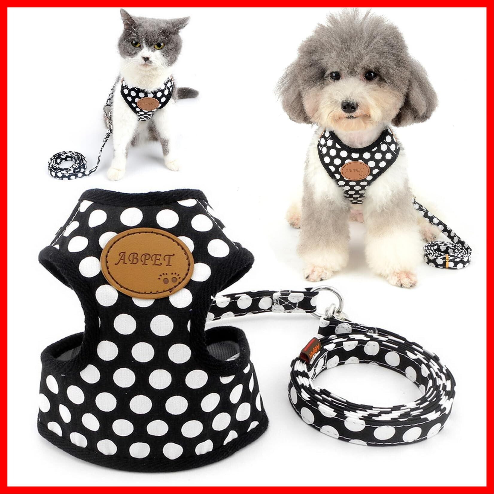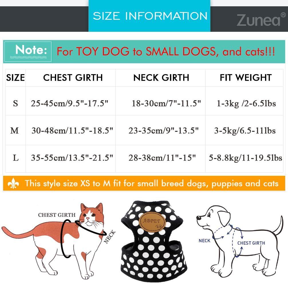 ZUNEA 犬用 ハーネス リード セット 可愛い ドット柄 ソフトメッシュ 胴輪 チワワ用 散歩 ペット用品 ドッグウェア 小型犬用 ブラック, M